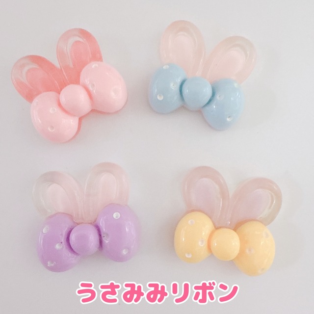 C125)2個 うさみみリボン デコパーツ パステルカラー 黄色 ピンク ブルー パープル