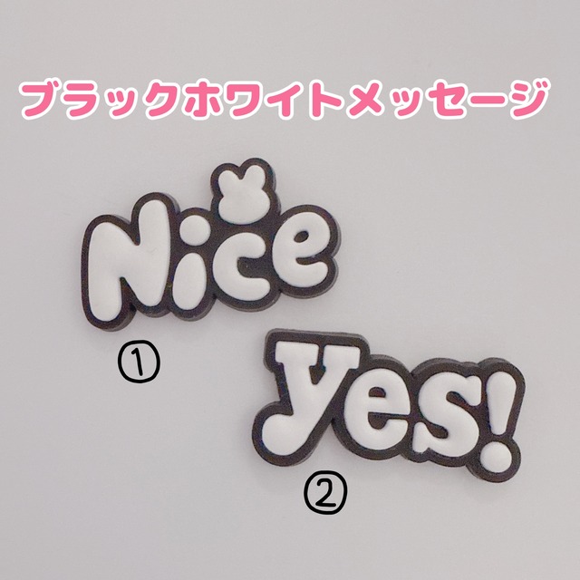 C141)2個 ブラックホワイトメッセージ ラバーパーツ niceナイス yes!イエス 白黒