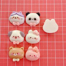 C54)2個 どうぶつさんお顔 ねこ パンダ いぬ うさぎ くま かわいい デコパーツ デコ レジン カボション