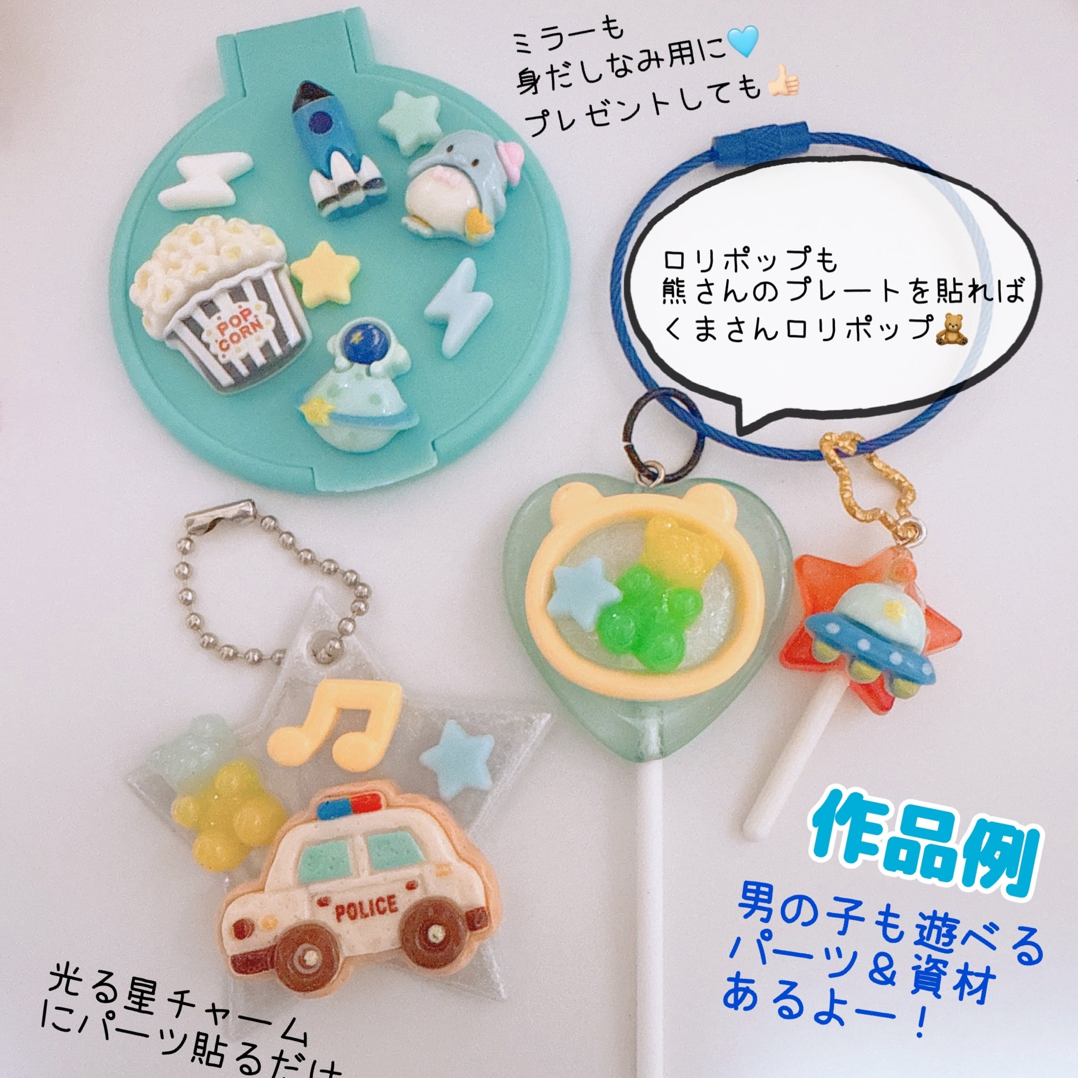 また大きなパーツのすきまに組み合わせたり、持たせたり、乗せたりしてもかわいい!