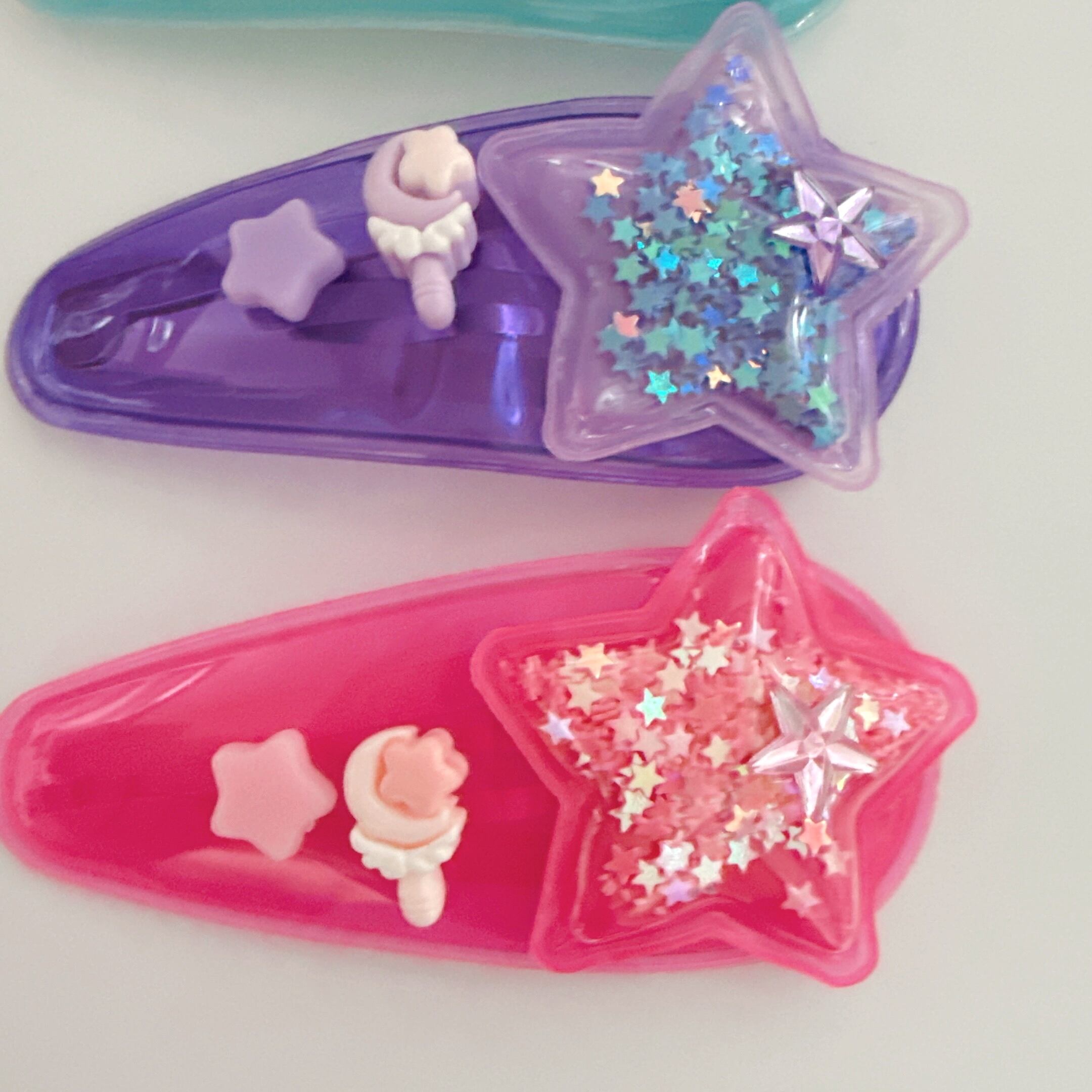 D76)4個ランダム ミニサイズ ゆめみるお月様ステッキ 魔法 杖 ピンク パープル デコパーツ レジン カボション