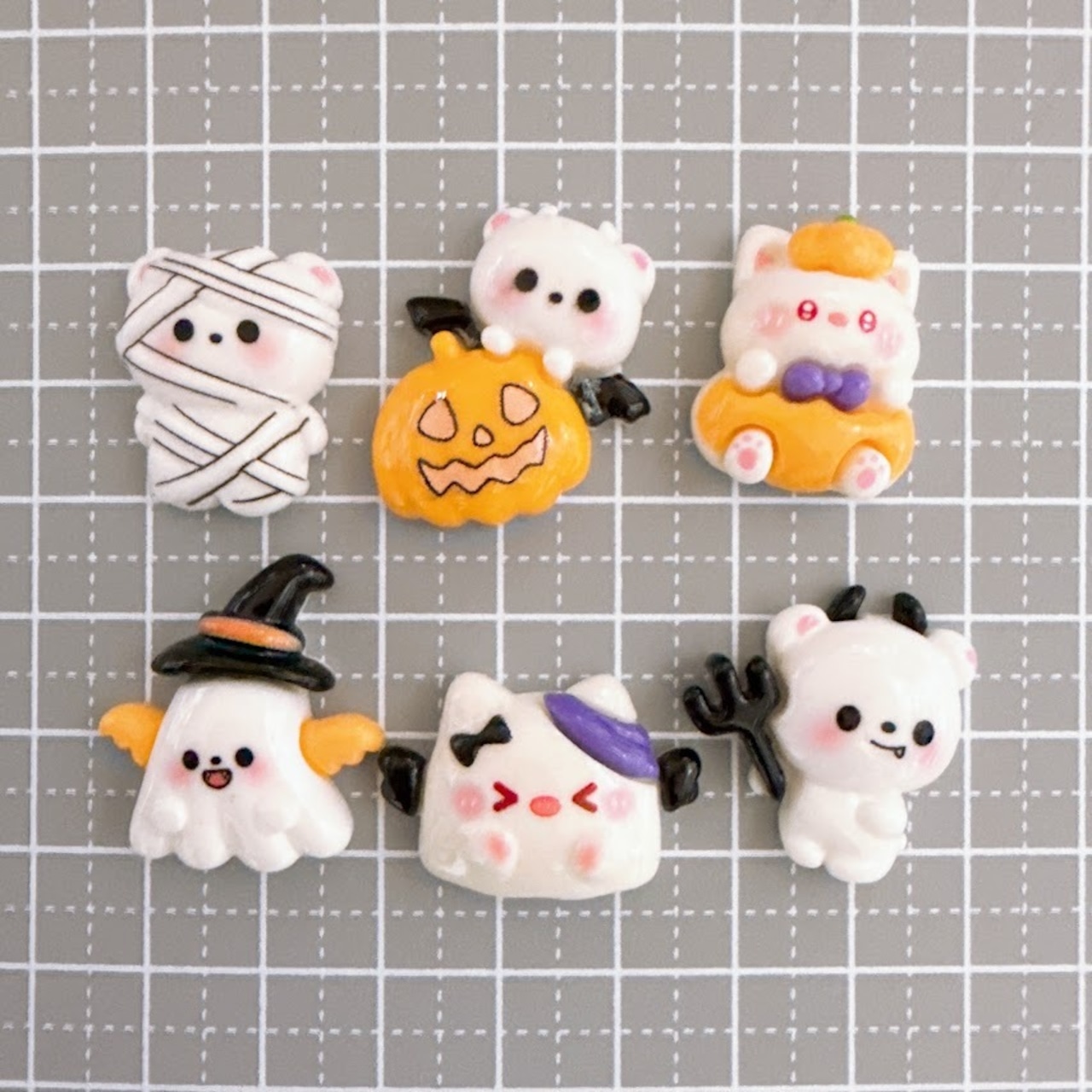 X11)8個ランダム ハロウィンつやつやタイプ ジャックオランタン おばけ カラフル こうもり くま うさぎ