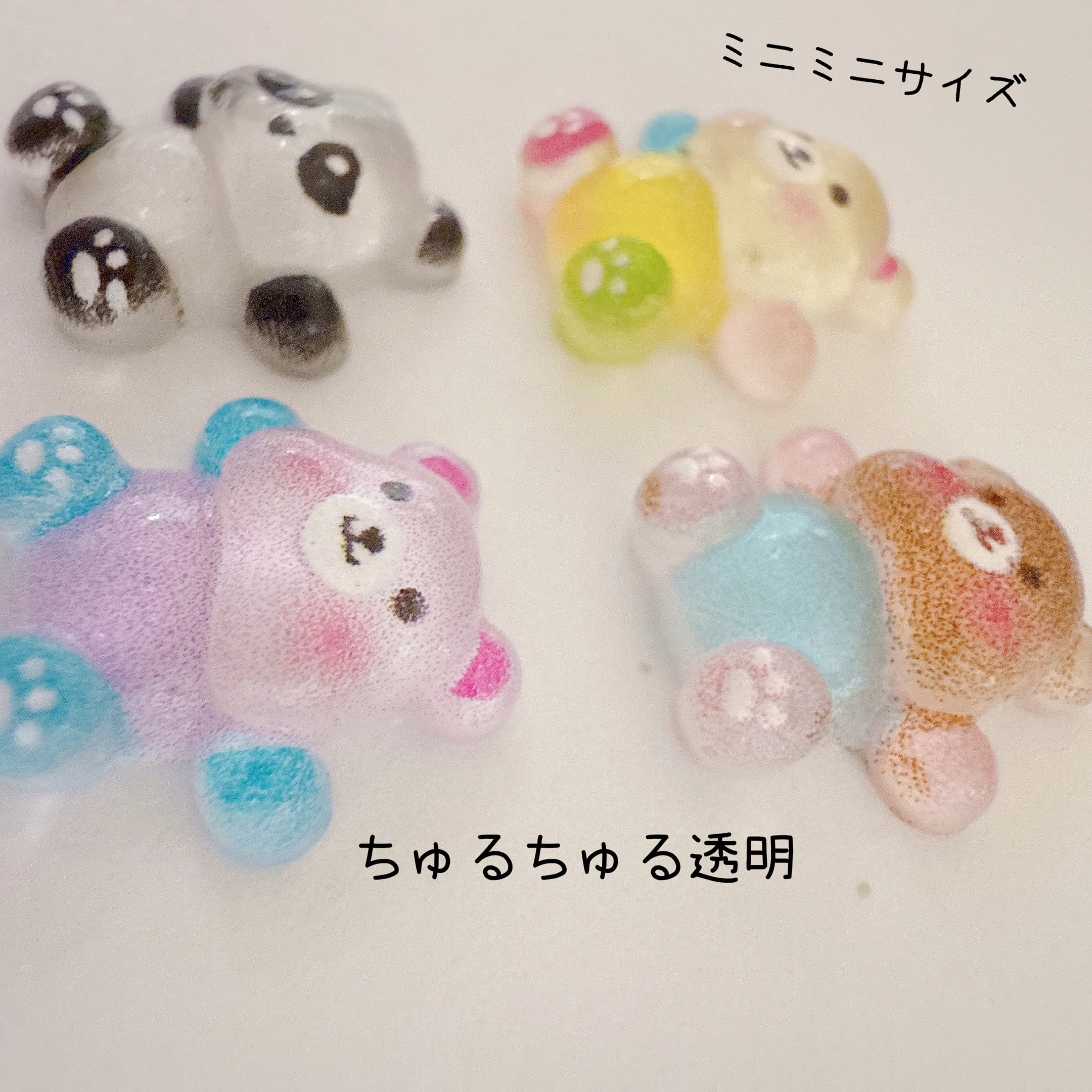 E10)4個 同柄 ミニミニサイズ カラフルくま パンダ 小さなパーツ くま レジン カボション 動物