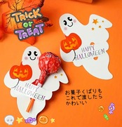 X26)10枚 各種同柄 ハロウィン キャンディ台紙 ロリポップ台紙 ディスプレー用 タグ アクセサリー台紙 お菓子台紙 ジャックオランタン おばけ