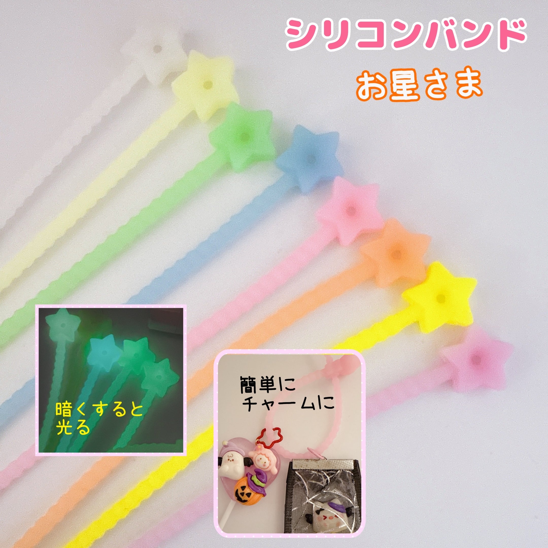 X29)2個 同色 星型 蓄光★シリコンバンド 柔らかくて扱いやすい チャームになるバンドです ハロウィン