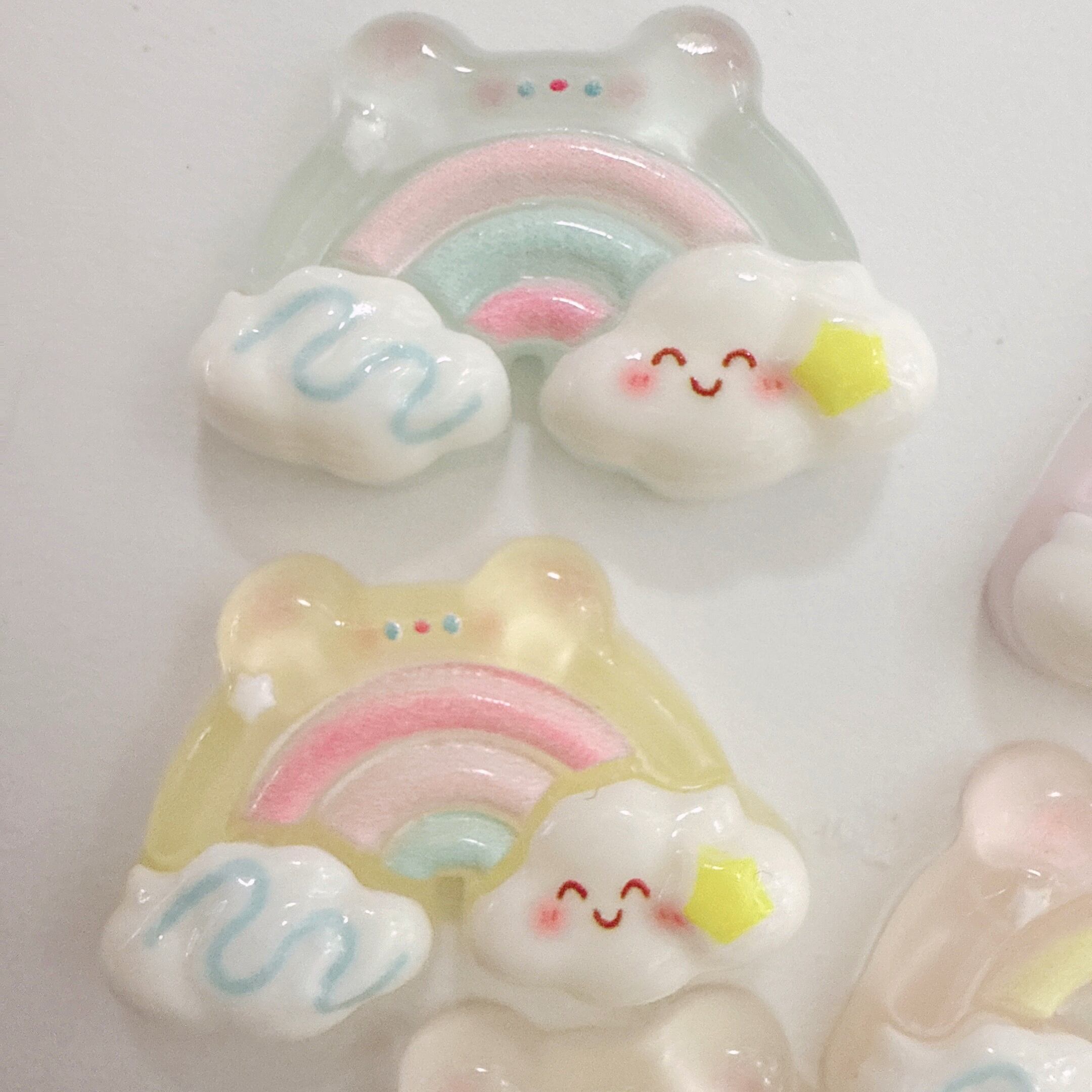 C135)2個 同色 くまみみレインボー 虹 くま 雲 かわいい デコパーツ デコ レジン カボション