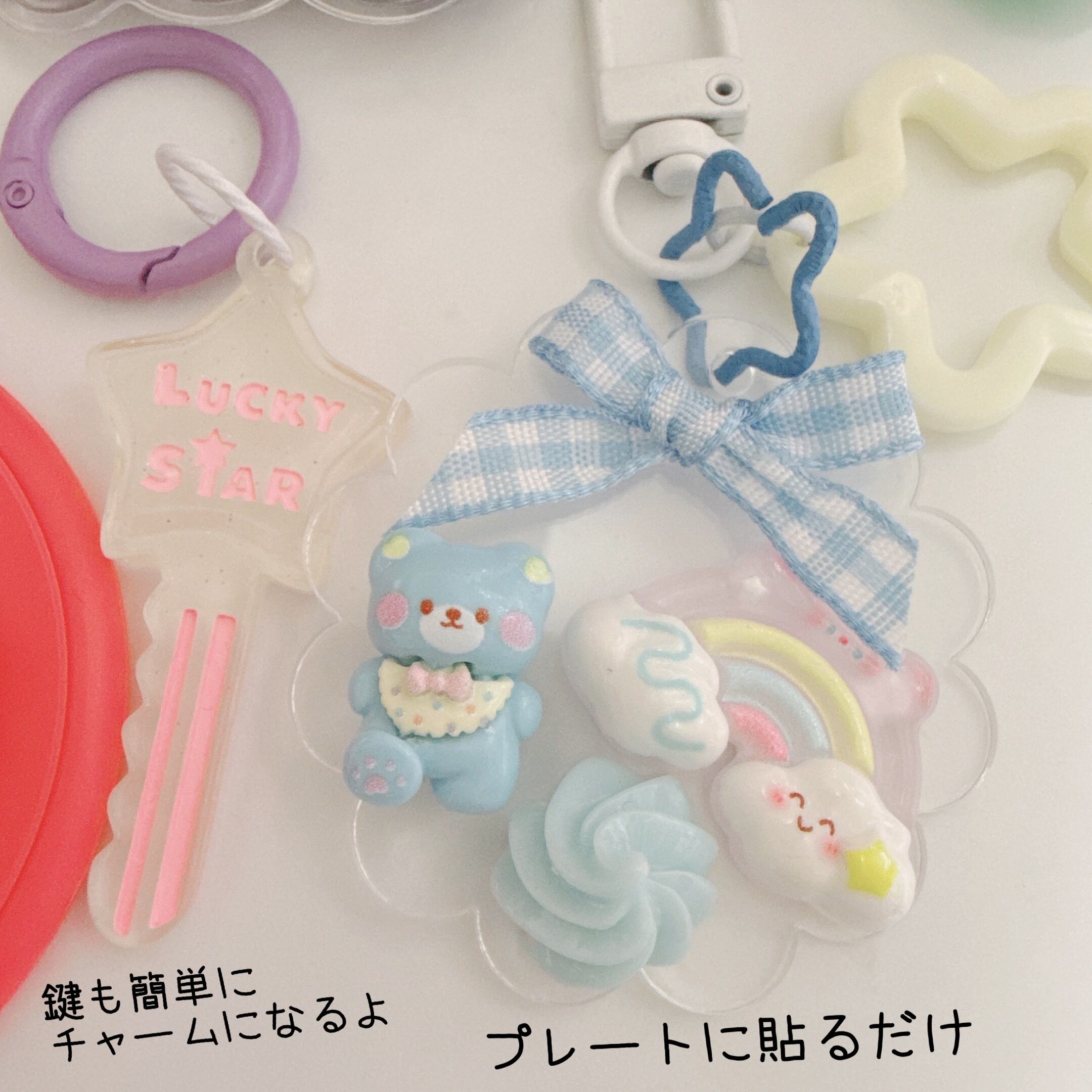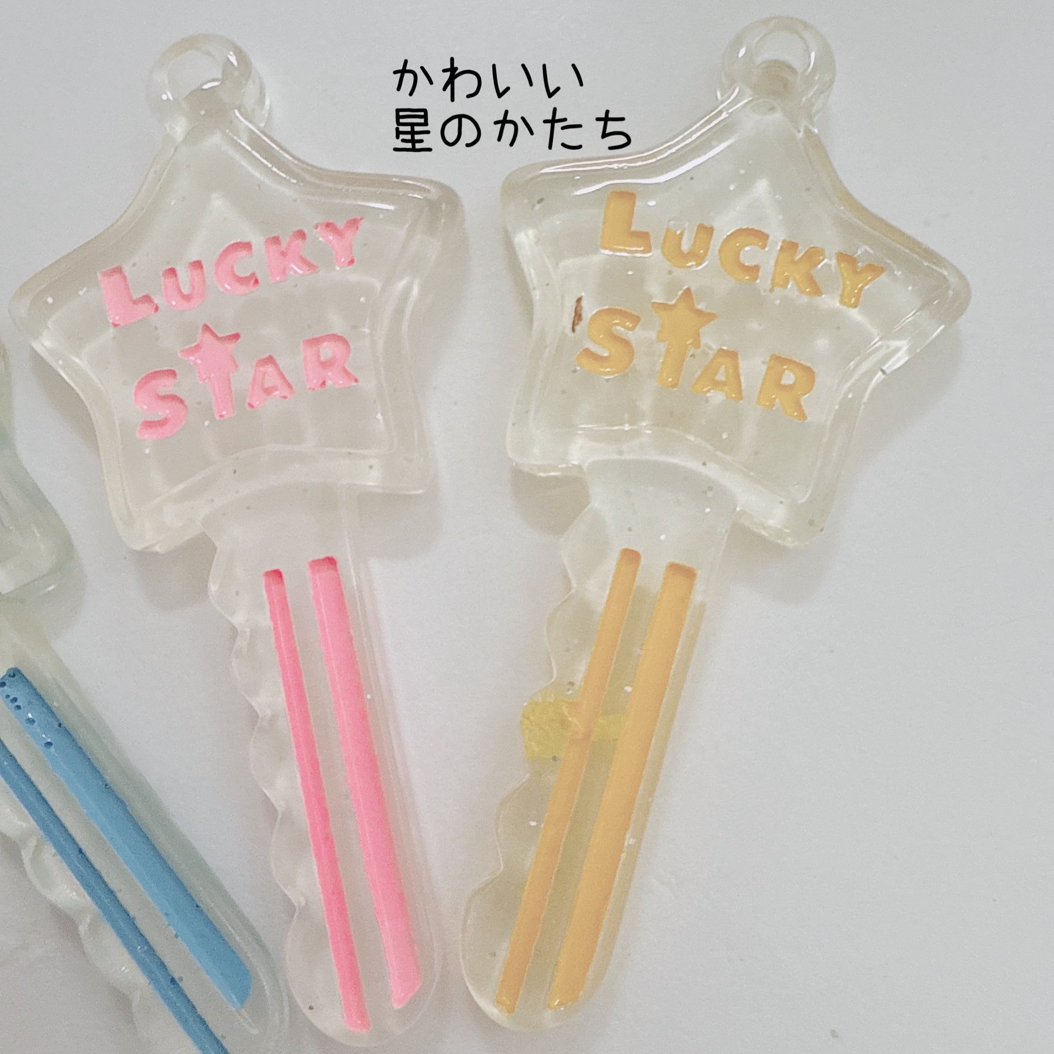 H13)2個 ラッキースターキー きらきらラメ入り 星 ★ 鍵 キーチャーム デコパーツ ぶら下がりチャーム