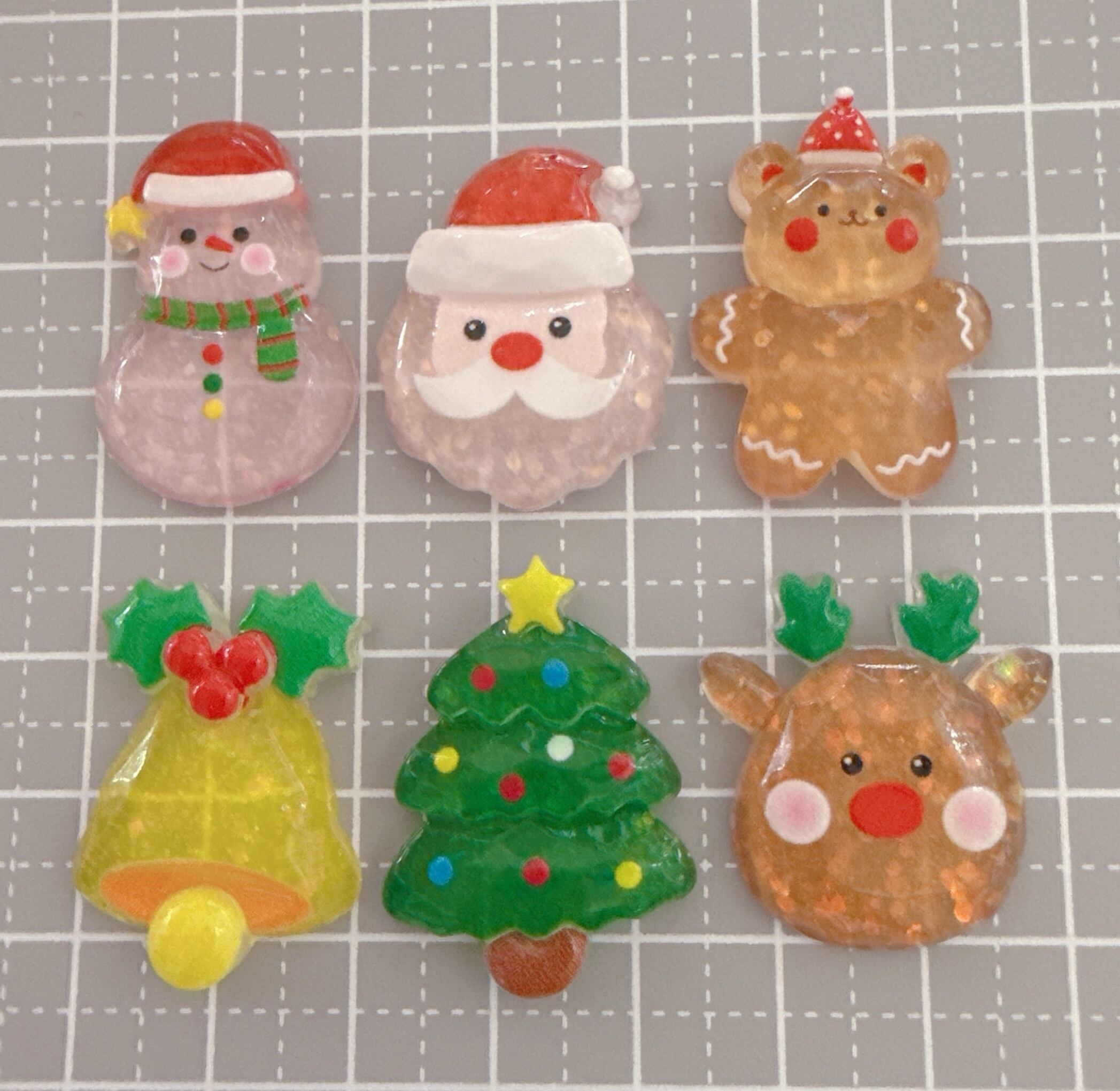 X35)6個 全種類 キラキラクリスマス ツリー サンタ くま トナカイ ベル 雪だるま