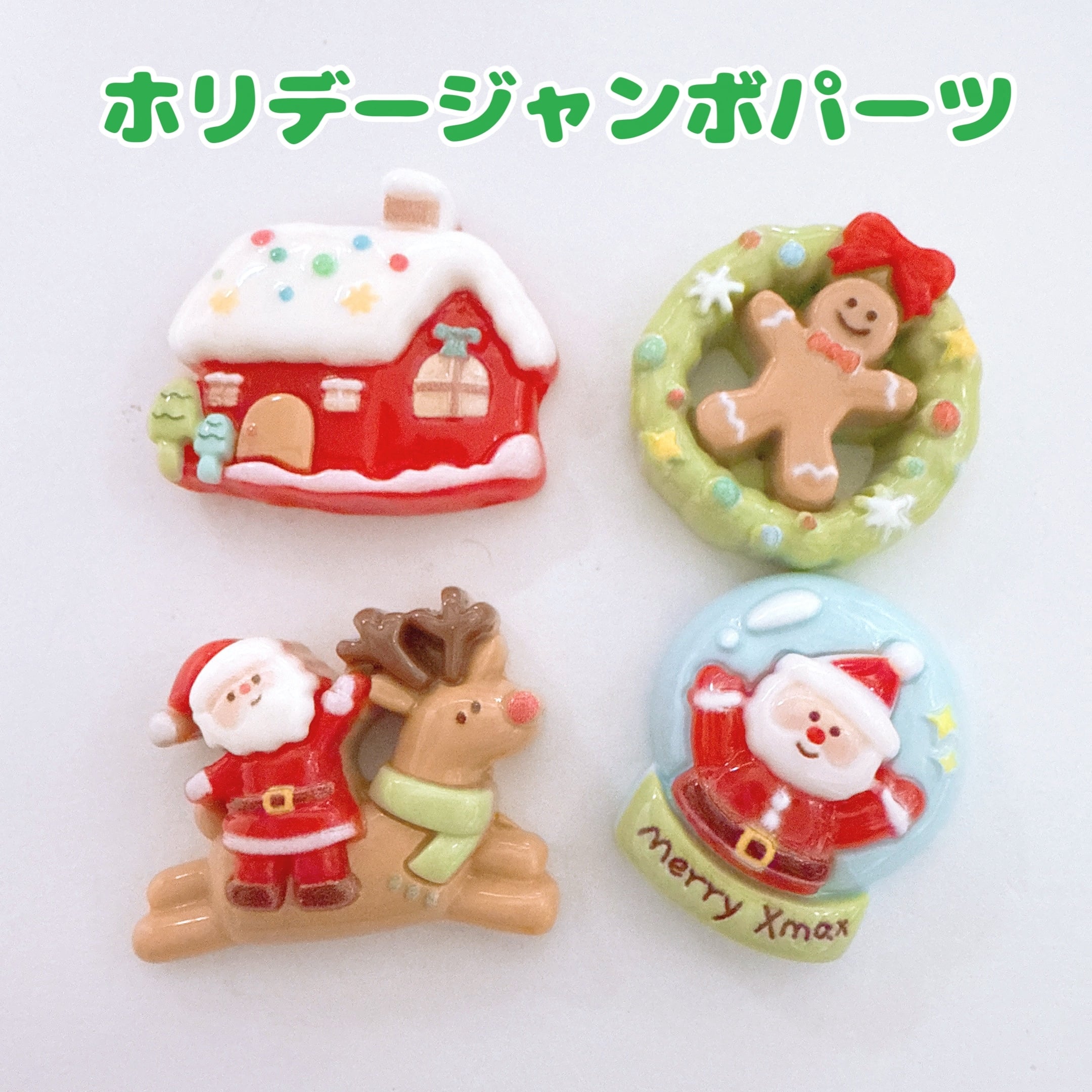 X37)4個 全種類 ホリデージャンボパーツ クリスマス リース サンタ 家 トナカイ スノードーム