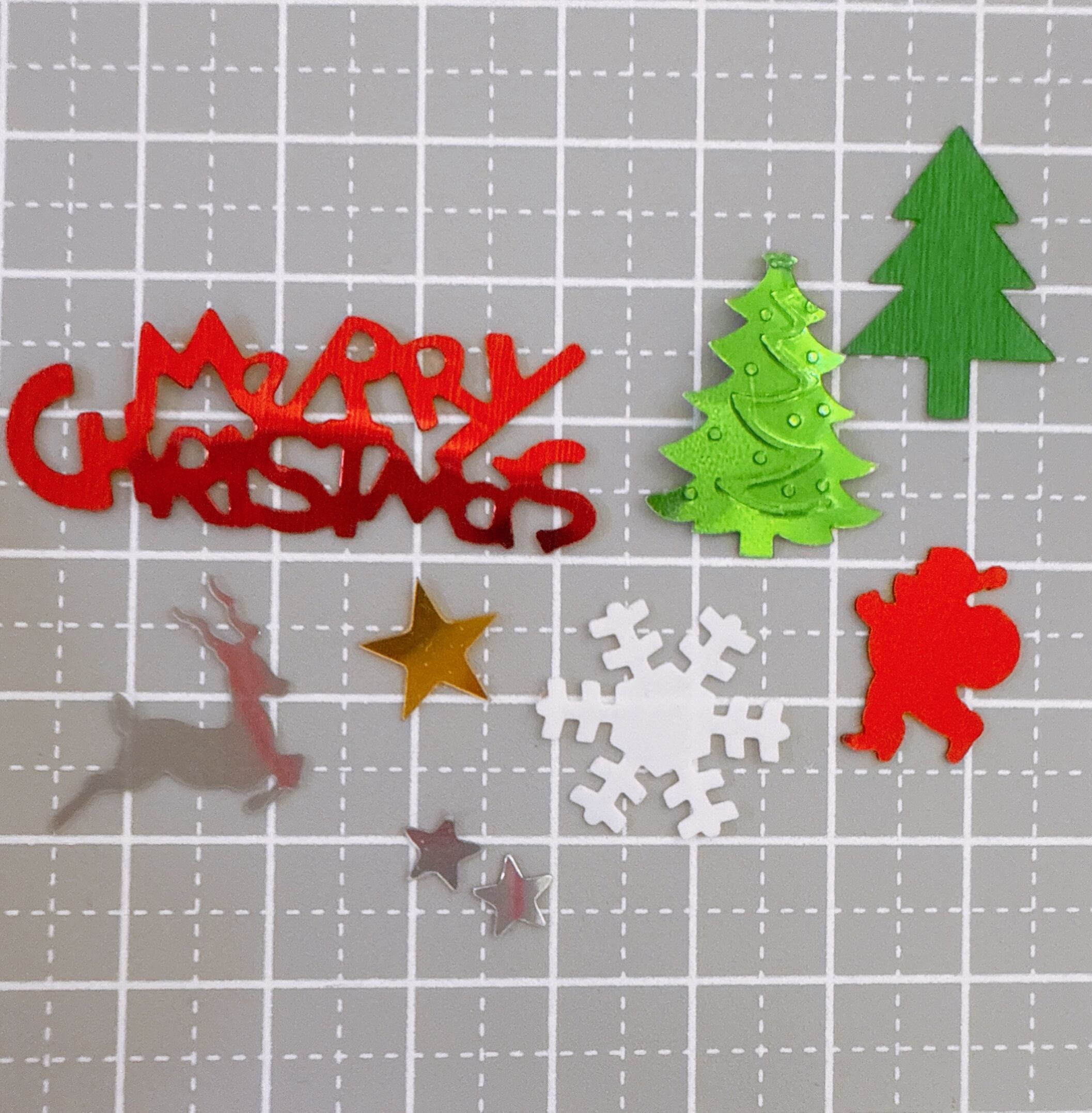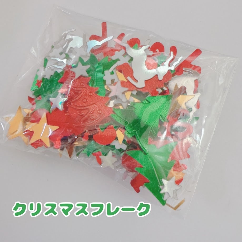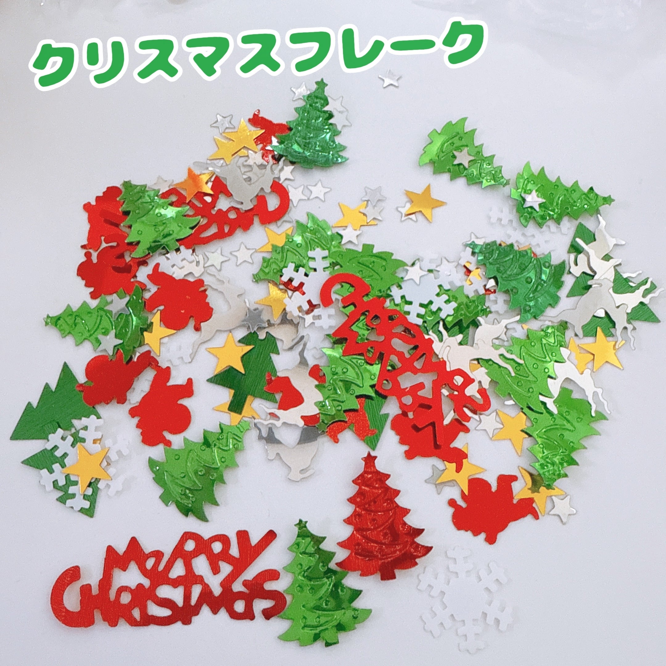X39)3.8g ランダム クリスマス フレーク スパンコール クリスマスツリー 星 スター きらきら 赤 緑
