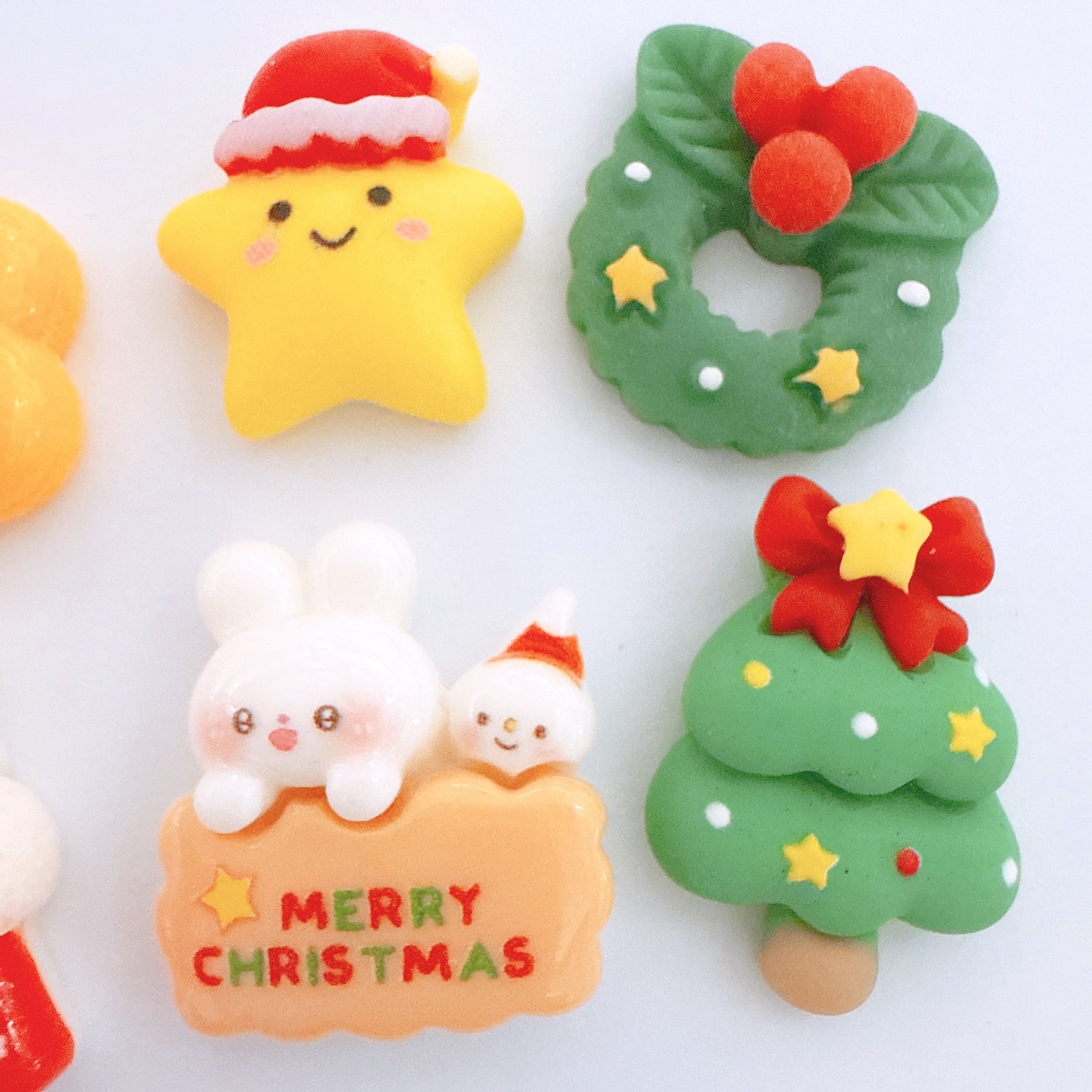 こちらにもかわいい定番のクリスマスツリーとリース。ぷっくりと厚みが使いやすく、これぞクリスマスってパーツを集めました!