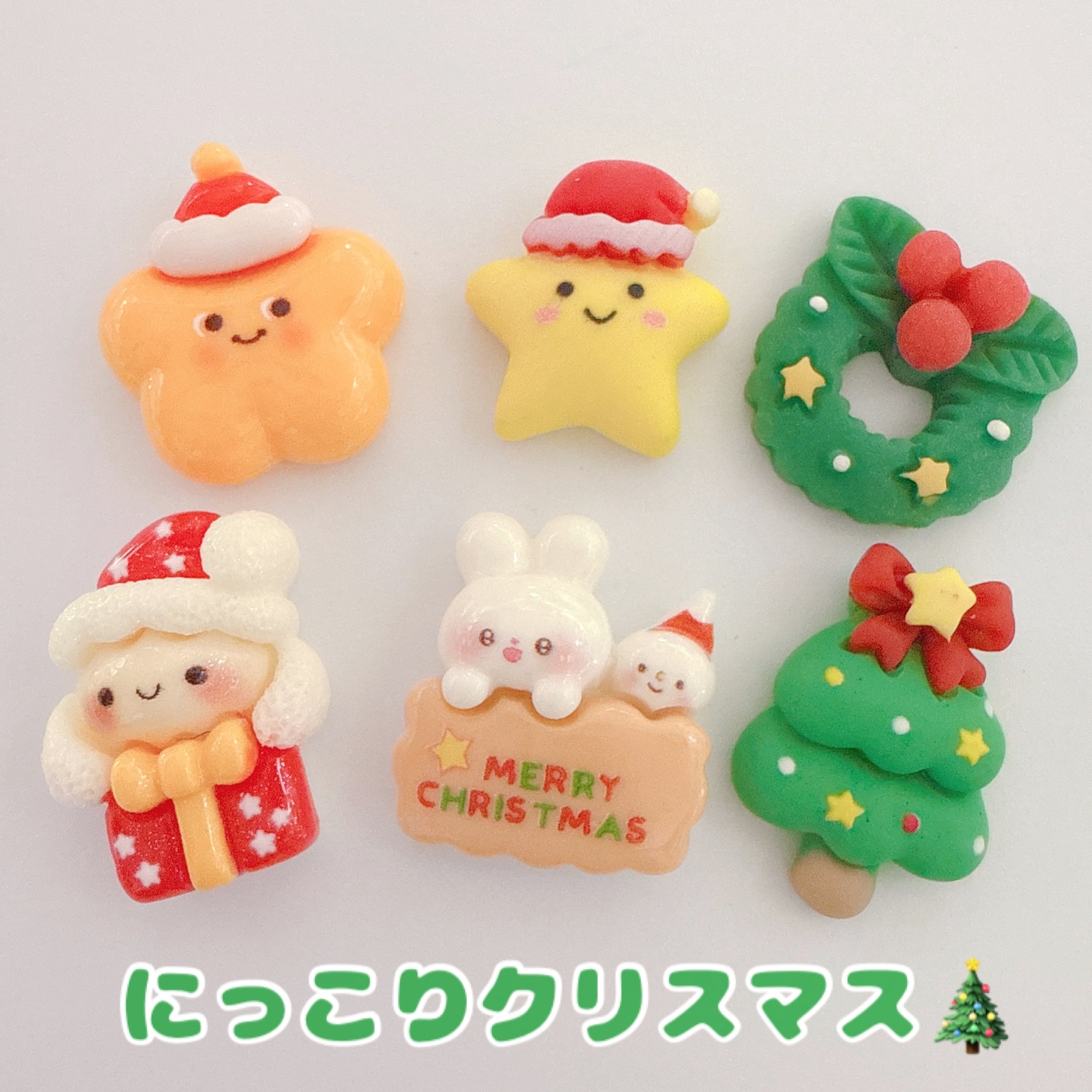 X43)6個 各1個 全種類 にっこりクリスマス ツリー サンタ帽子 うさぎ 羊 ツリー リース