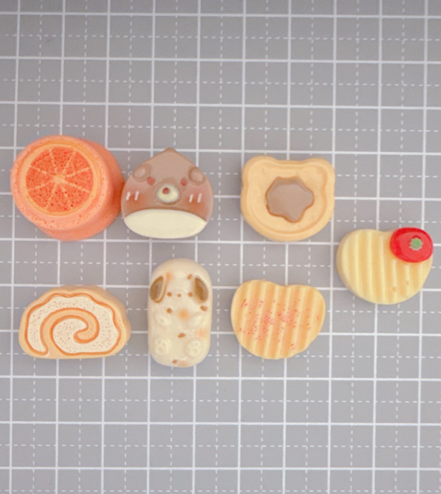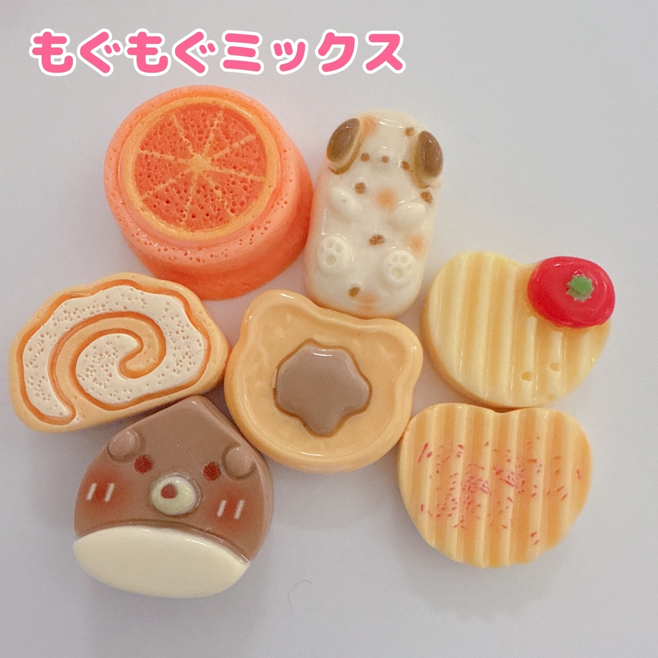 C144)4個ランダム パン オレンジ ワッフル かわいい デコパーツ パン ロールケーキ ポテチ