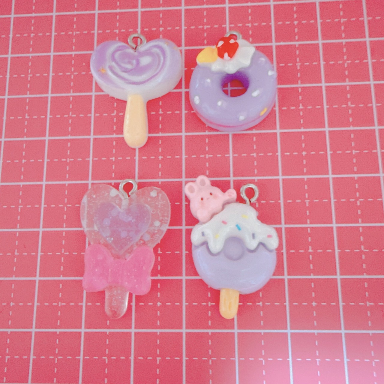 H20)8個 数量限定① リング付パーツセット パープル系 ぶら下がりチャーム デコパーツ 穴付き ヒートン付