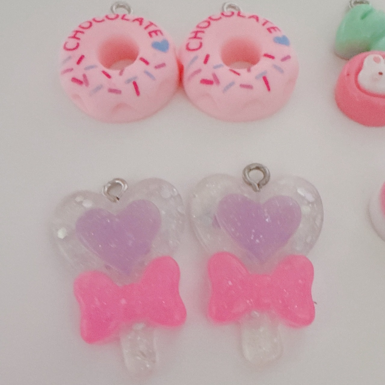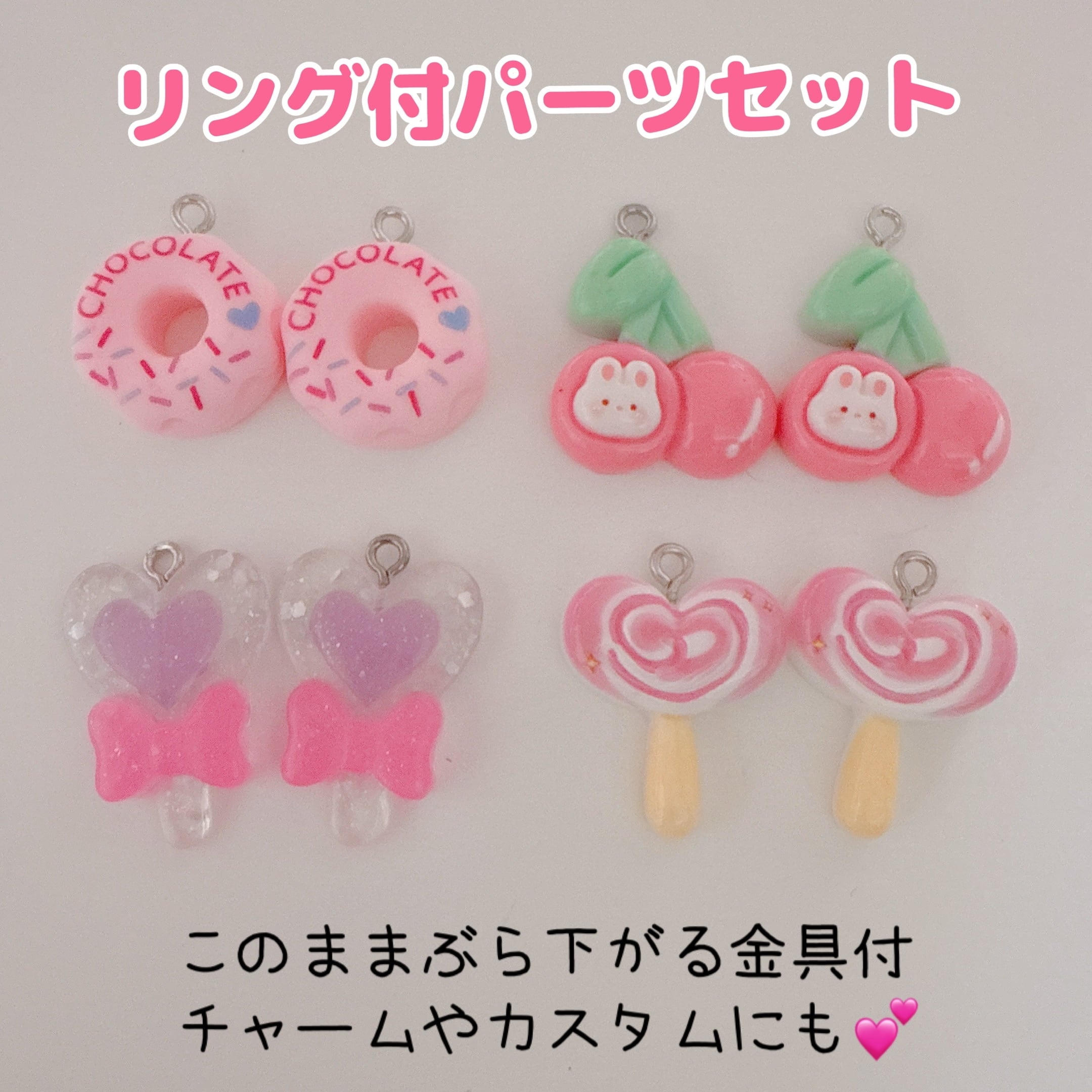 H22)8個 数量限定③ リング付パーツセット パープル ピンク系 ぶら下がりチャーム デコパーツ 穴付き ヒートン付