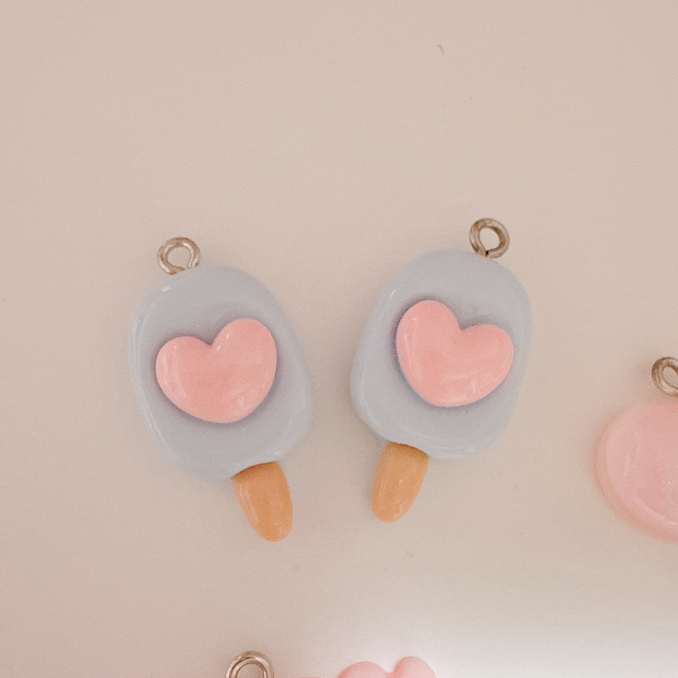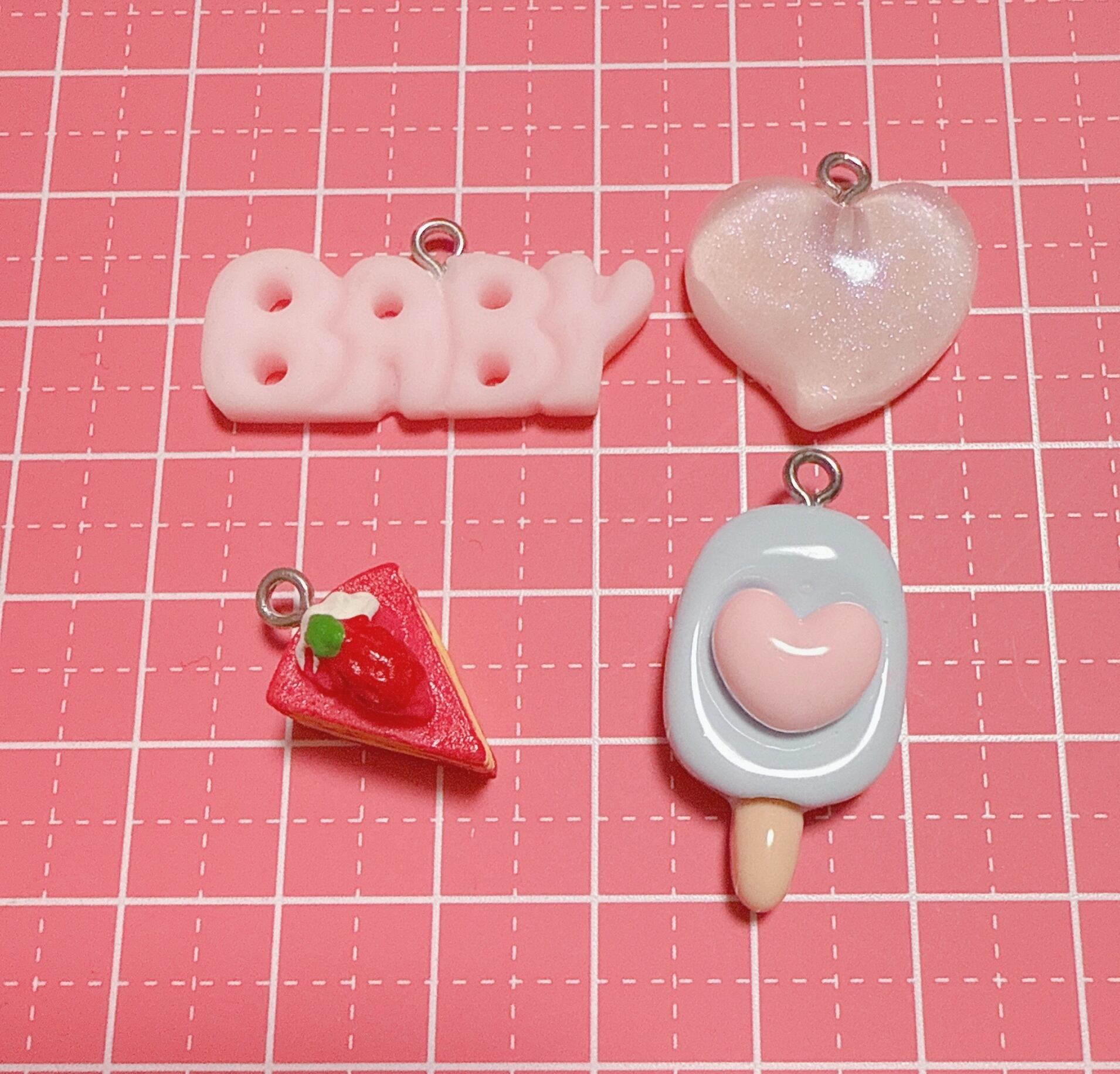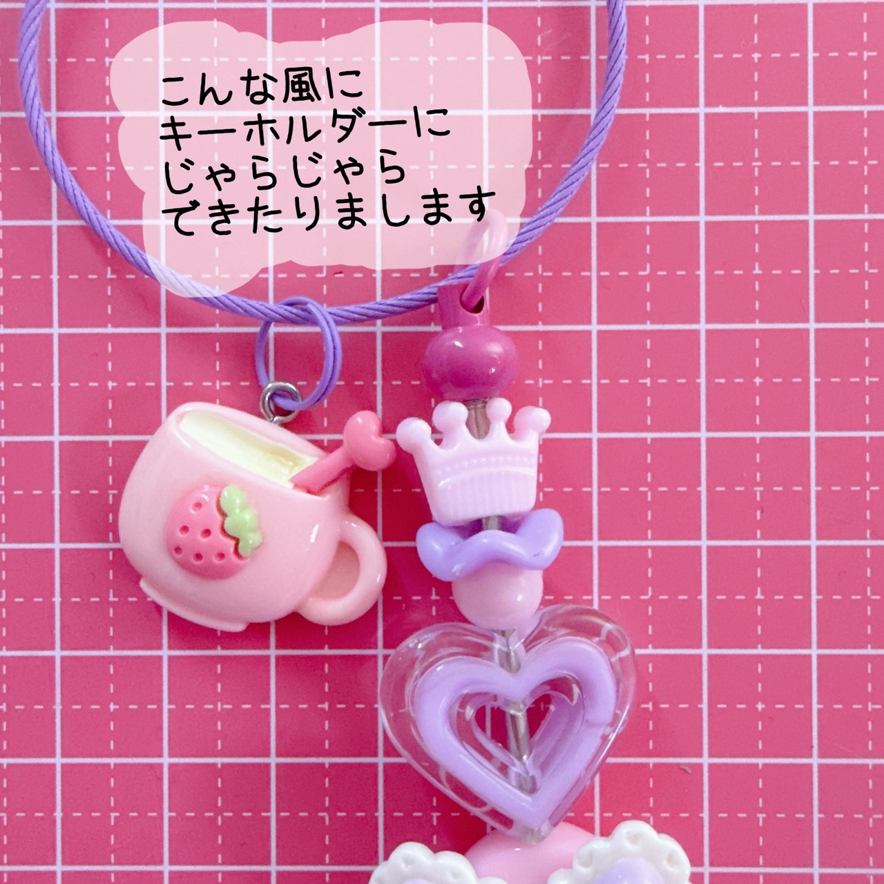 H25)8個 数量限定⑥ リング付パーツセット パープル系 ぶら下がりチャーム デコパーツ 穴付き ヒートン付