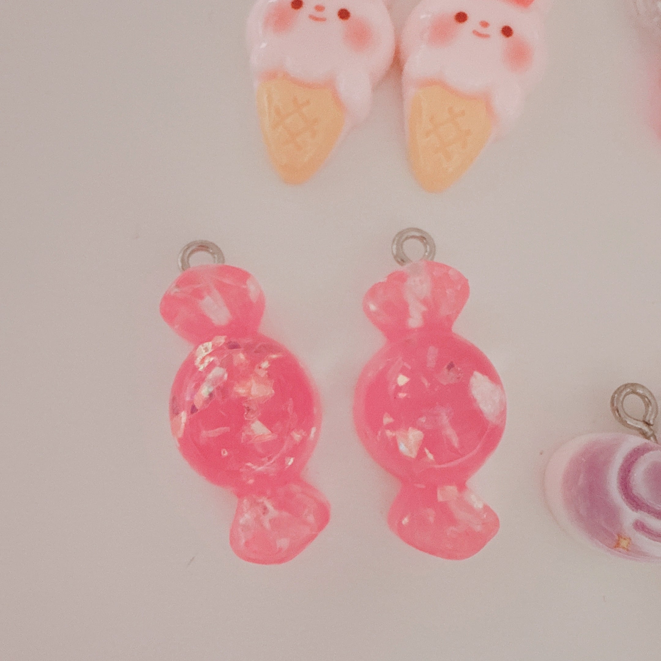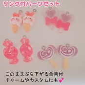 H30)8個 数量限定⑪ リング付パーツセット ピンク パープル系 ぶら下がりチャーム デコパーツ 穴付き ヒートン付