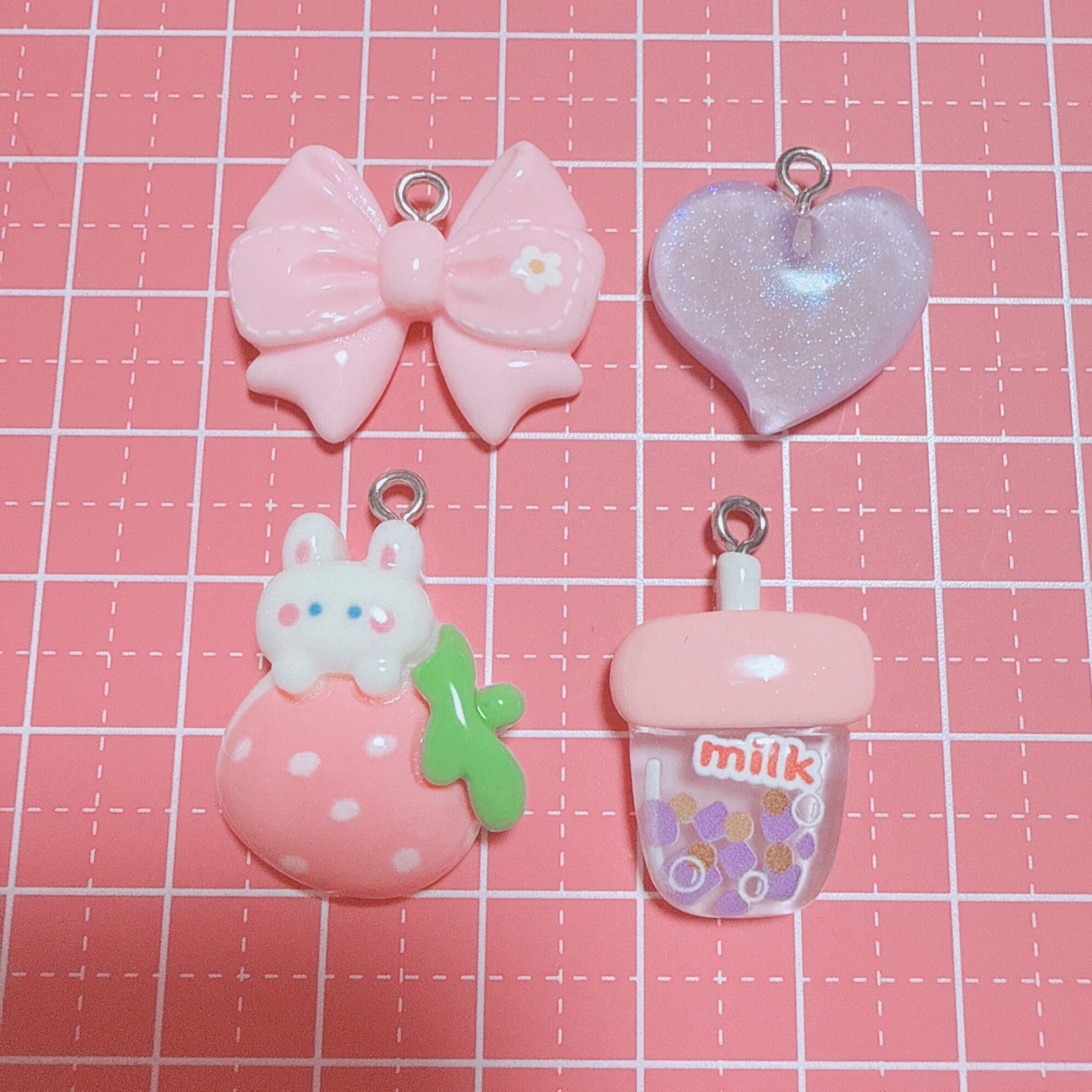 H31)8個 数量限定⑫ リング付パーツセット パープル系 ぶら下がりチャーム デコパーツ 穴付き ヒートン付