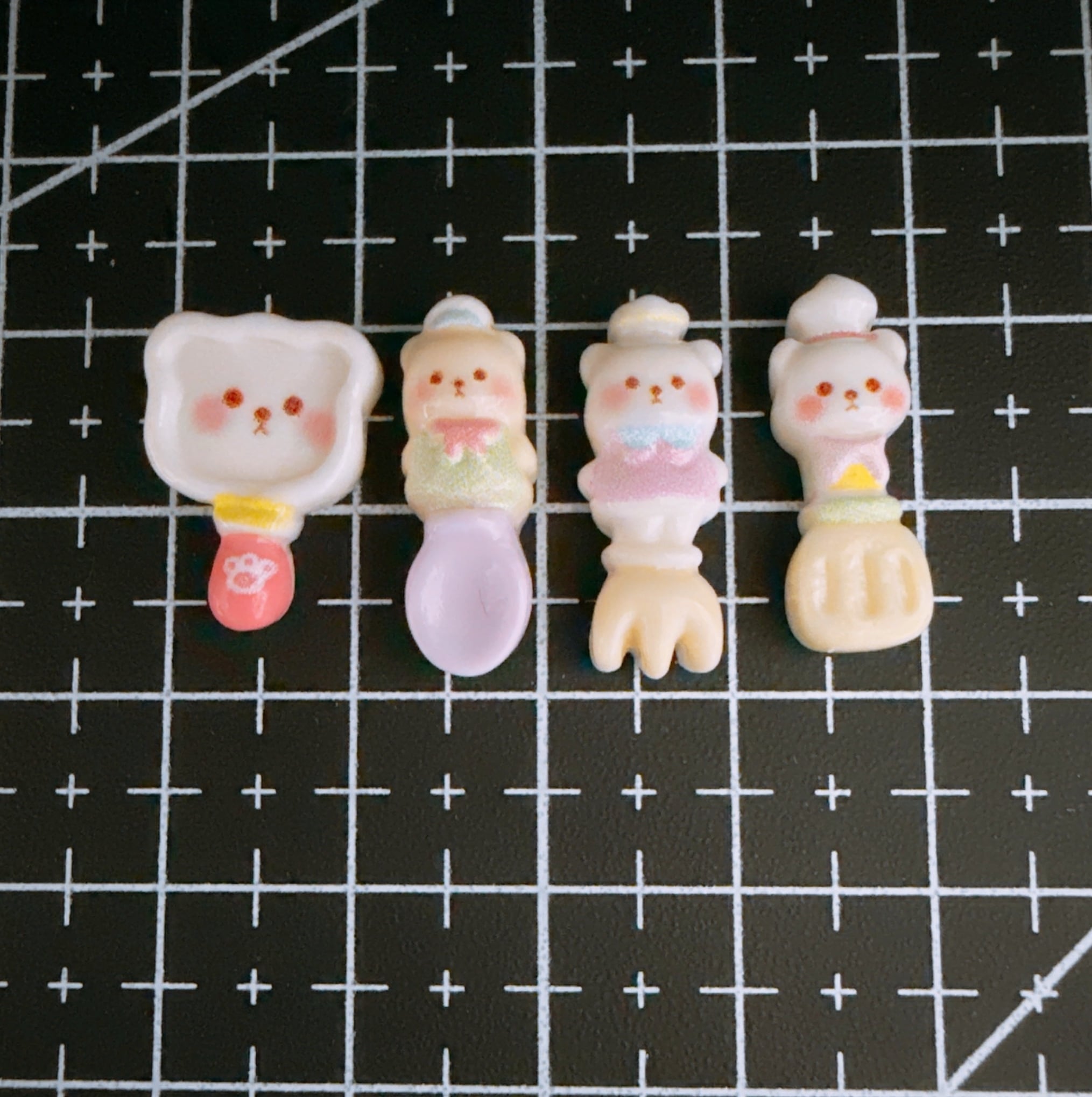 D92)4個 各1 ミニサイズ ゆめみるくまのカフェタイム キッチングッズ フライパン フライ返し フォーク スプーン パーツ デコパーツ