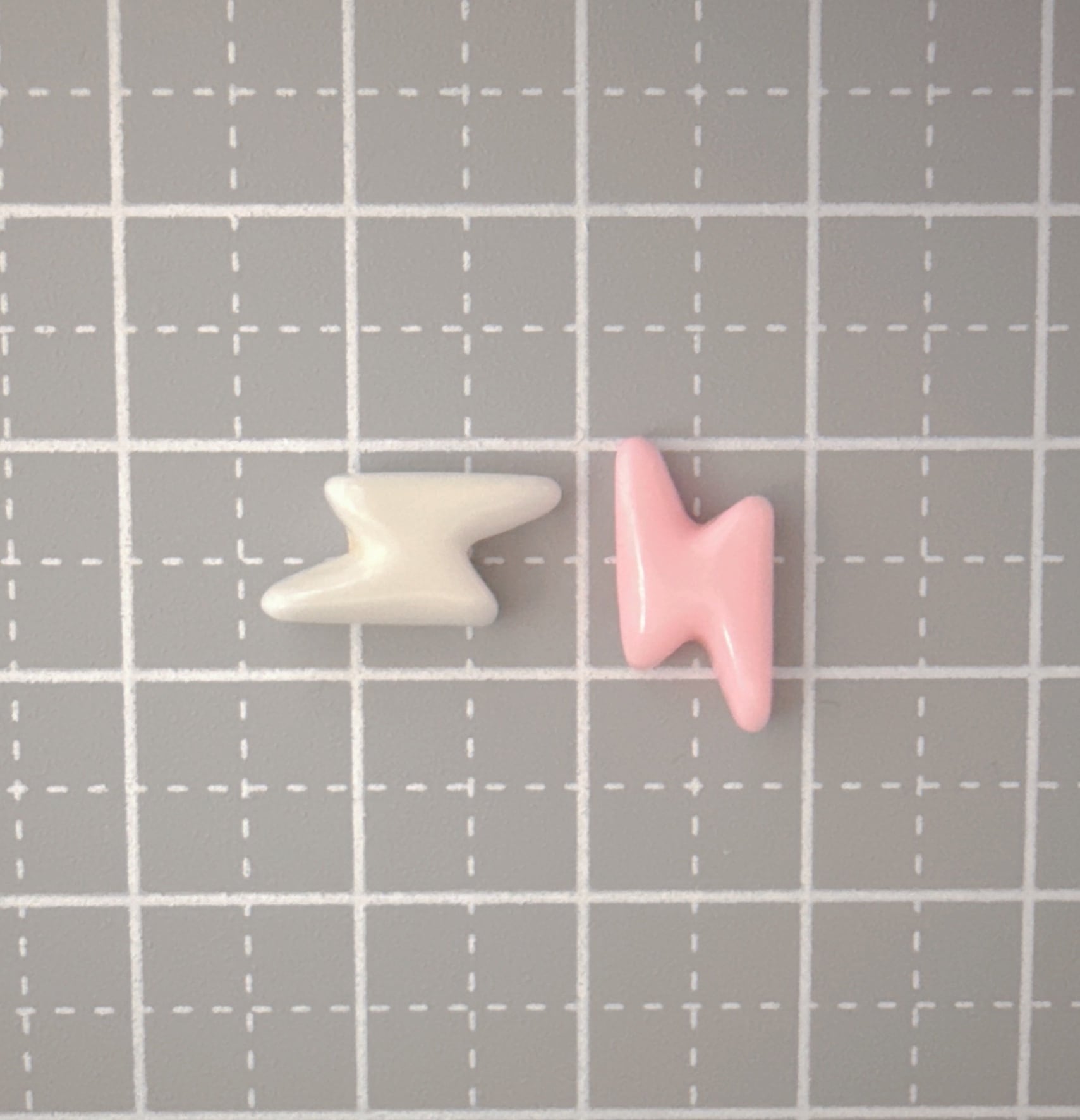 D95)4個 ランダム ミニサイズ パステルイナズマ 稲妻 ピカピカ クリーム ピンク ブルー パープル デコパーツ