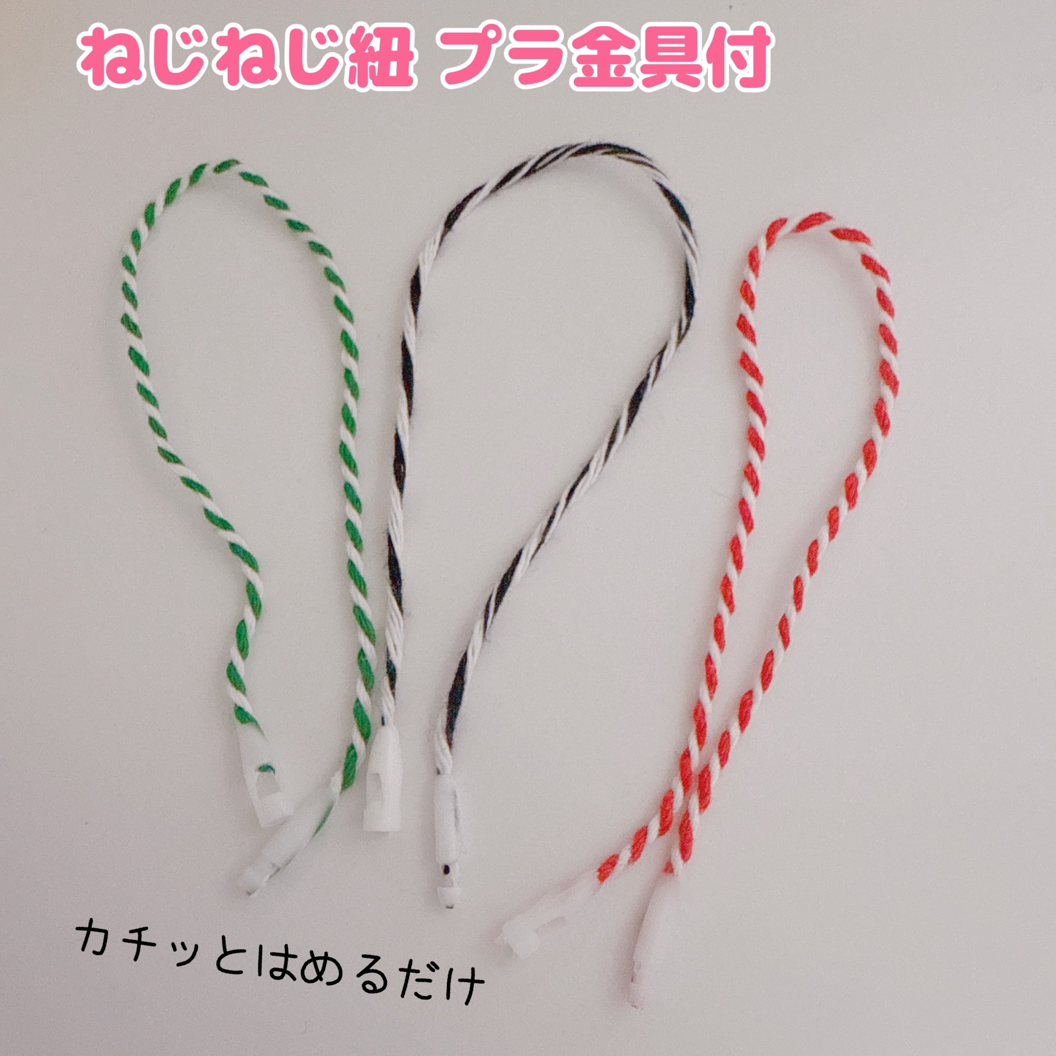 P22)10本 ねじねじ紐 プラ金具付き 20㎝ コットン紐 赤+緑+黒(訳あり20本) チャーム ワークショップにも