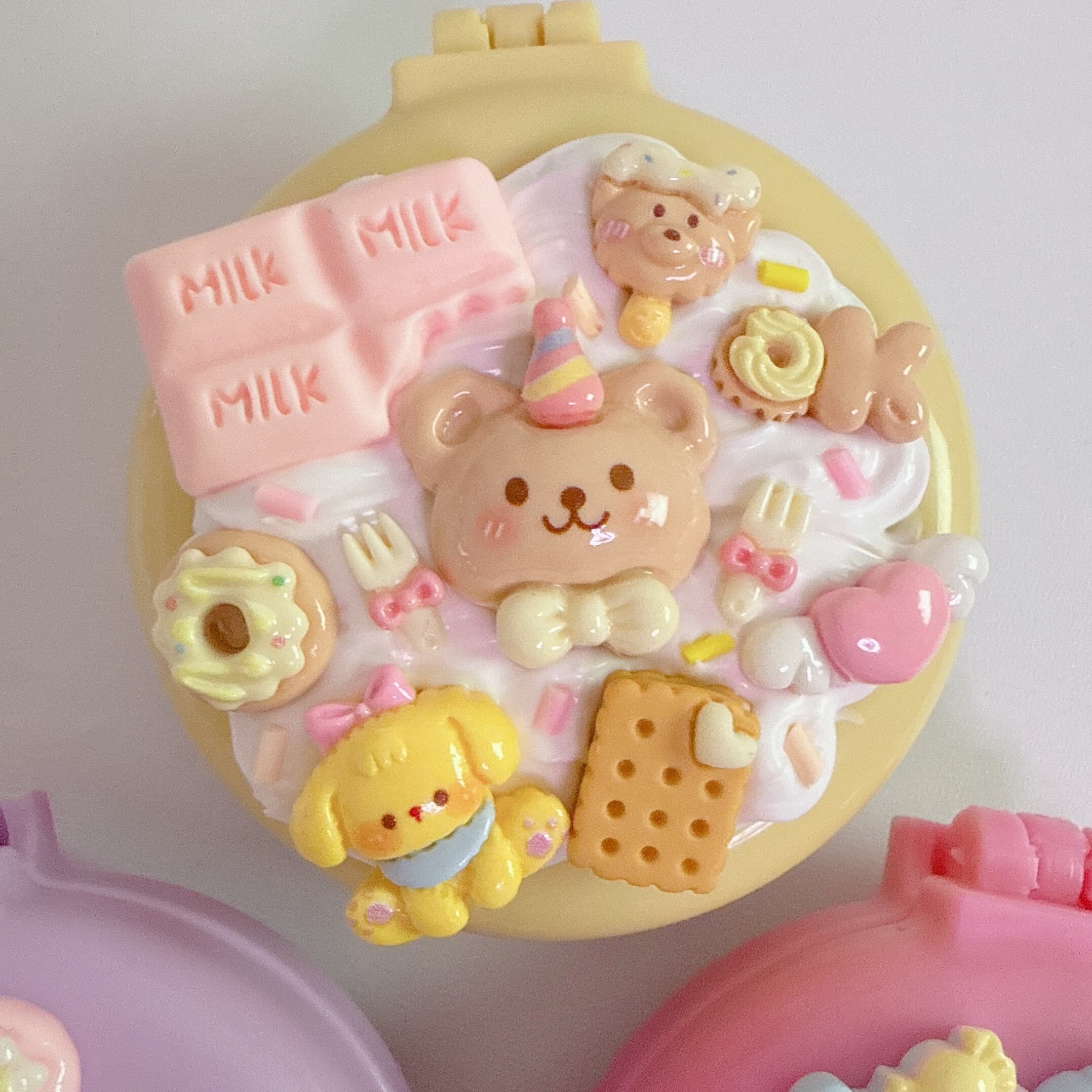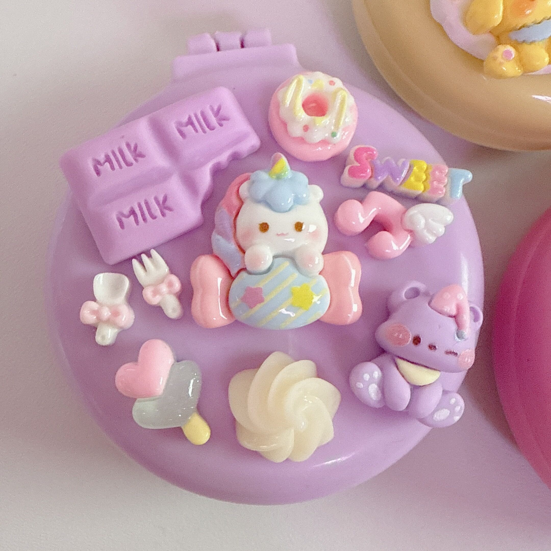 こちらも先日のコンパクトミラー同様に手のひらに収まるミニサイズなので、デコに時間もかからず、パーツも大量に必要なく程よくデコれるサイズだと思います。