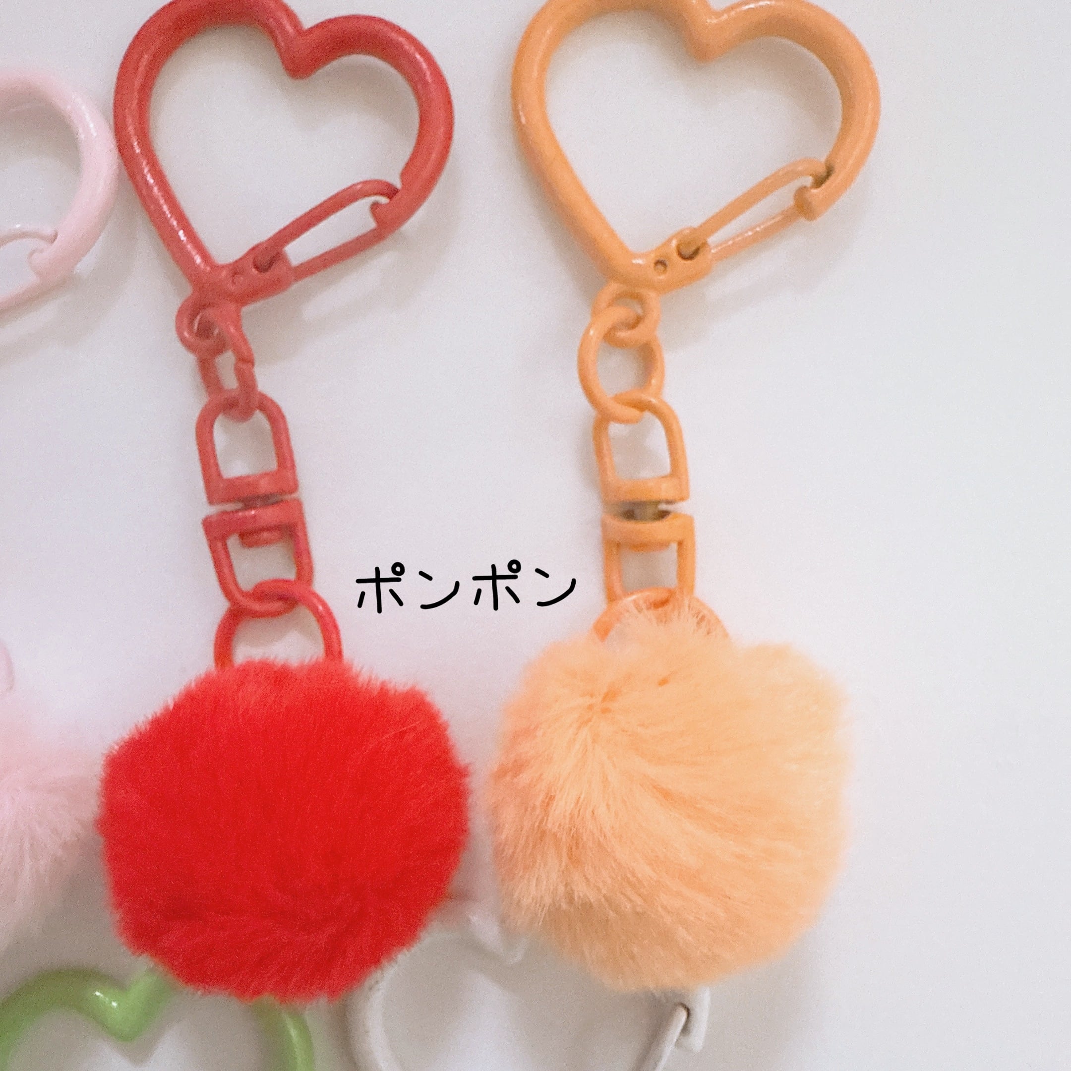 P23)2個 ポンポンハートチャーム キーホルダー パーツ キーホルダー金具 チャーム キーホルダー