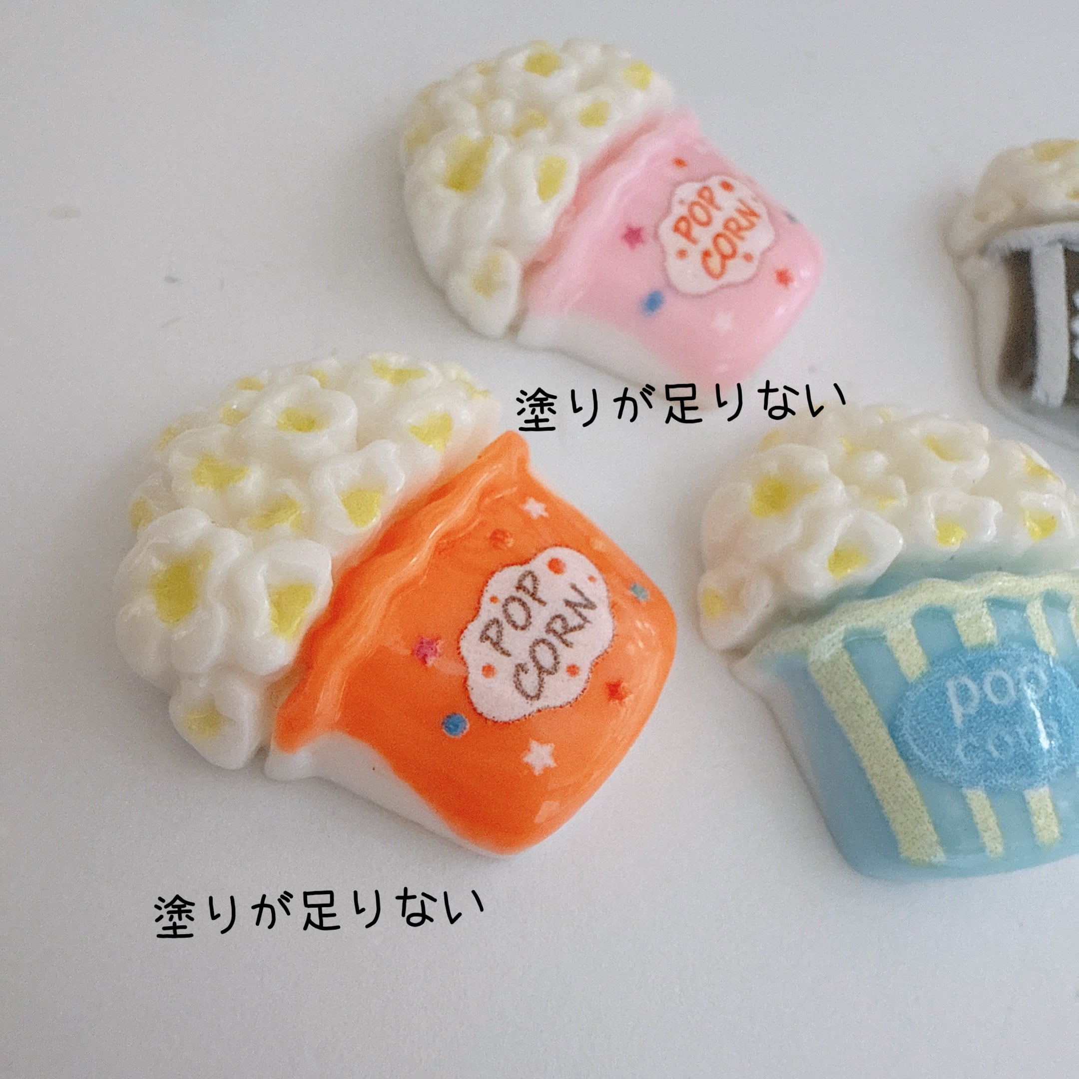 C153)2個 ポップコーン お菓子 男の子も使える デコパーツ デコ レジン カボション かわいい