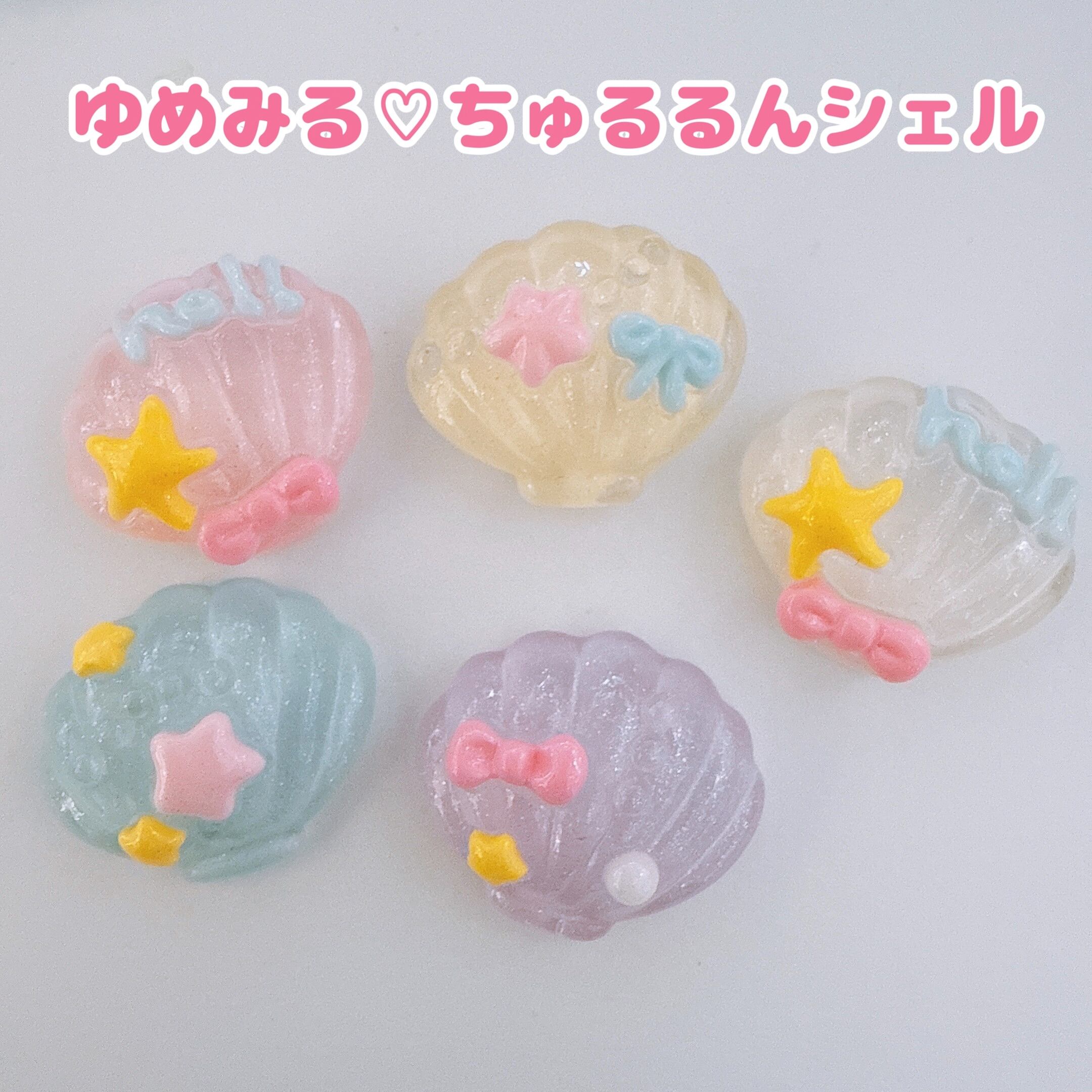 C154)2個 ゆめみる♡ちゅるるんシェル 貝がら マーメイド パステル 透明 デコパーツ デコ レジン カボション かわいい