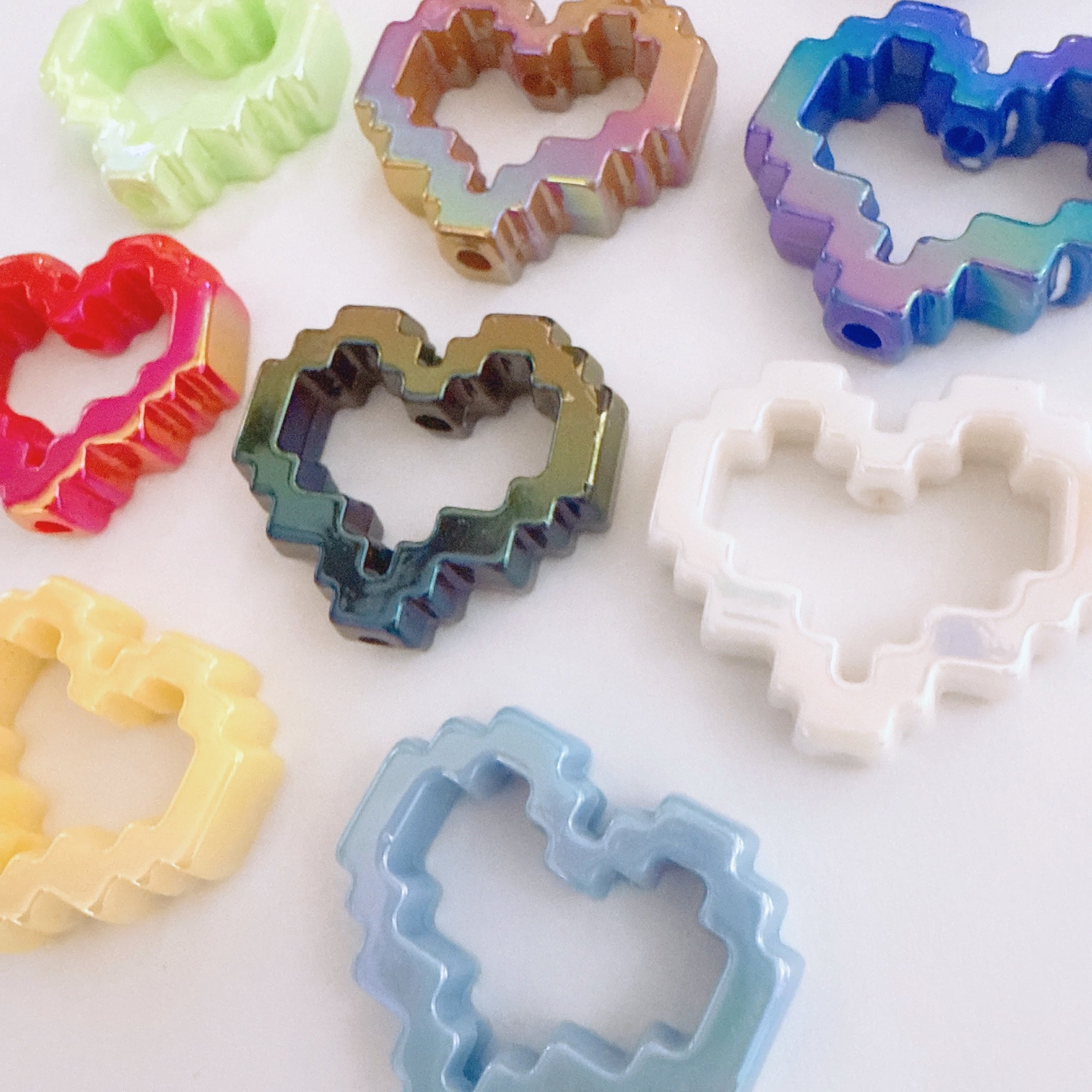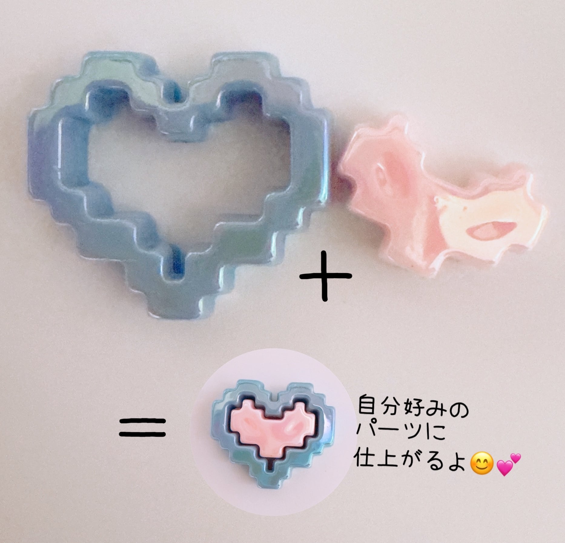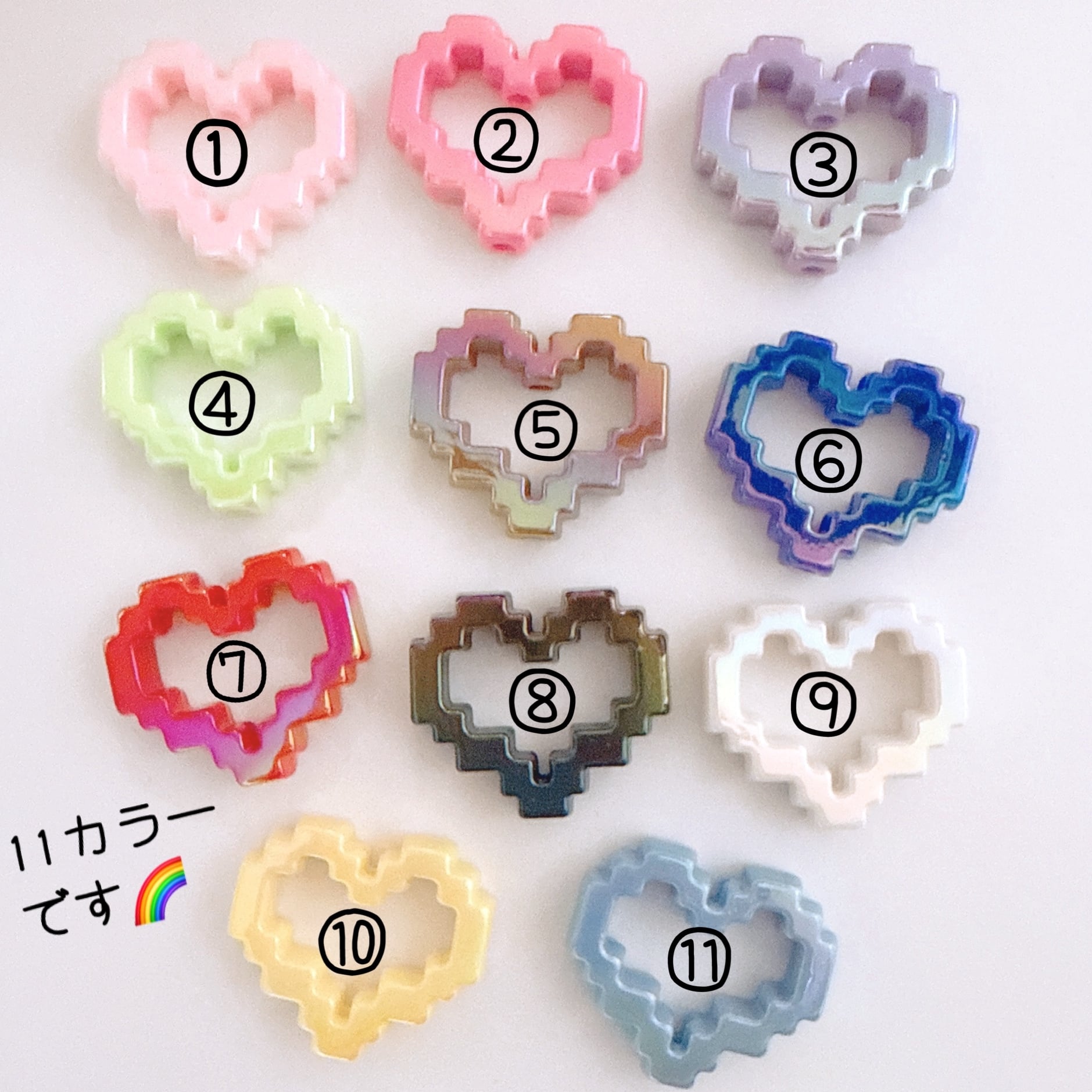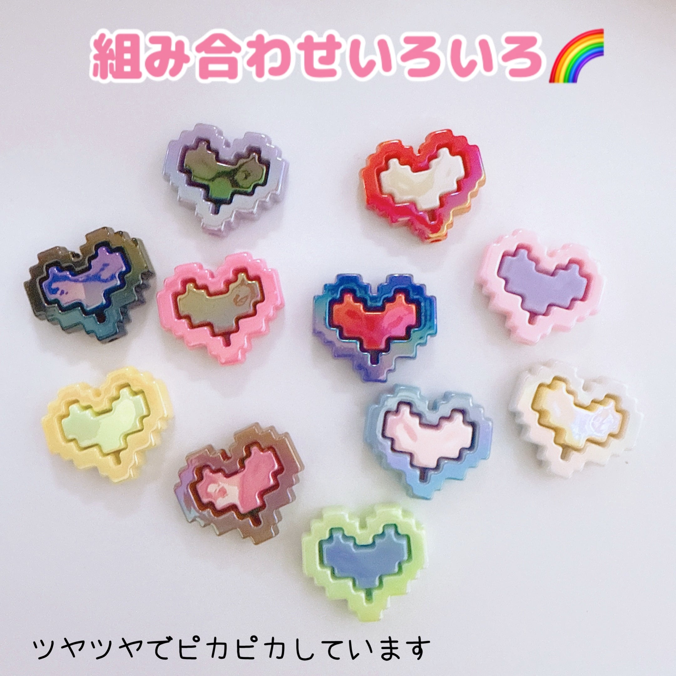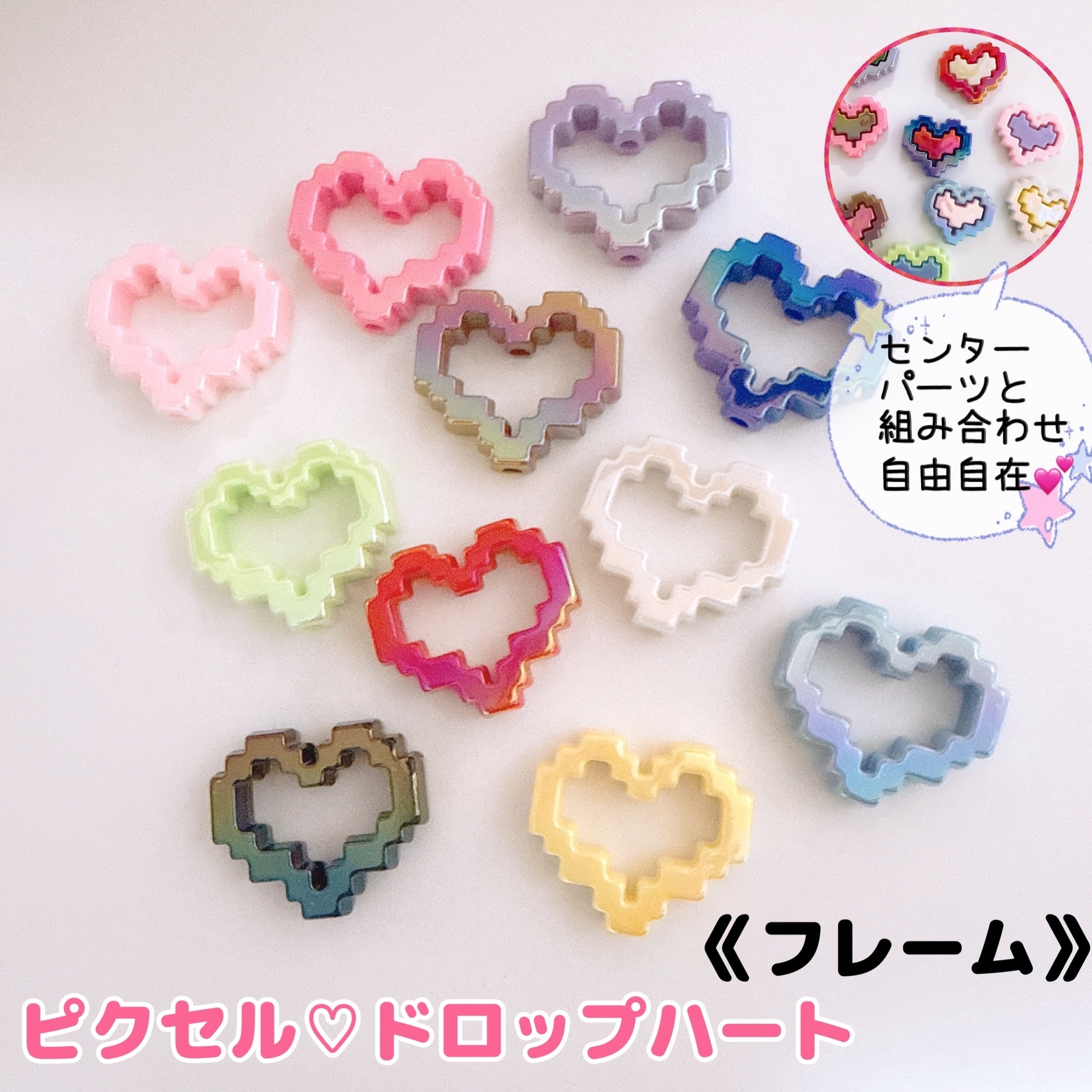 K44)2個同色 ピクセルドロップハート フレーム カスタムパーツ カスタムペン用 カスタムチャーム ハート
