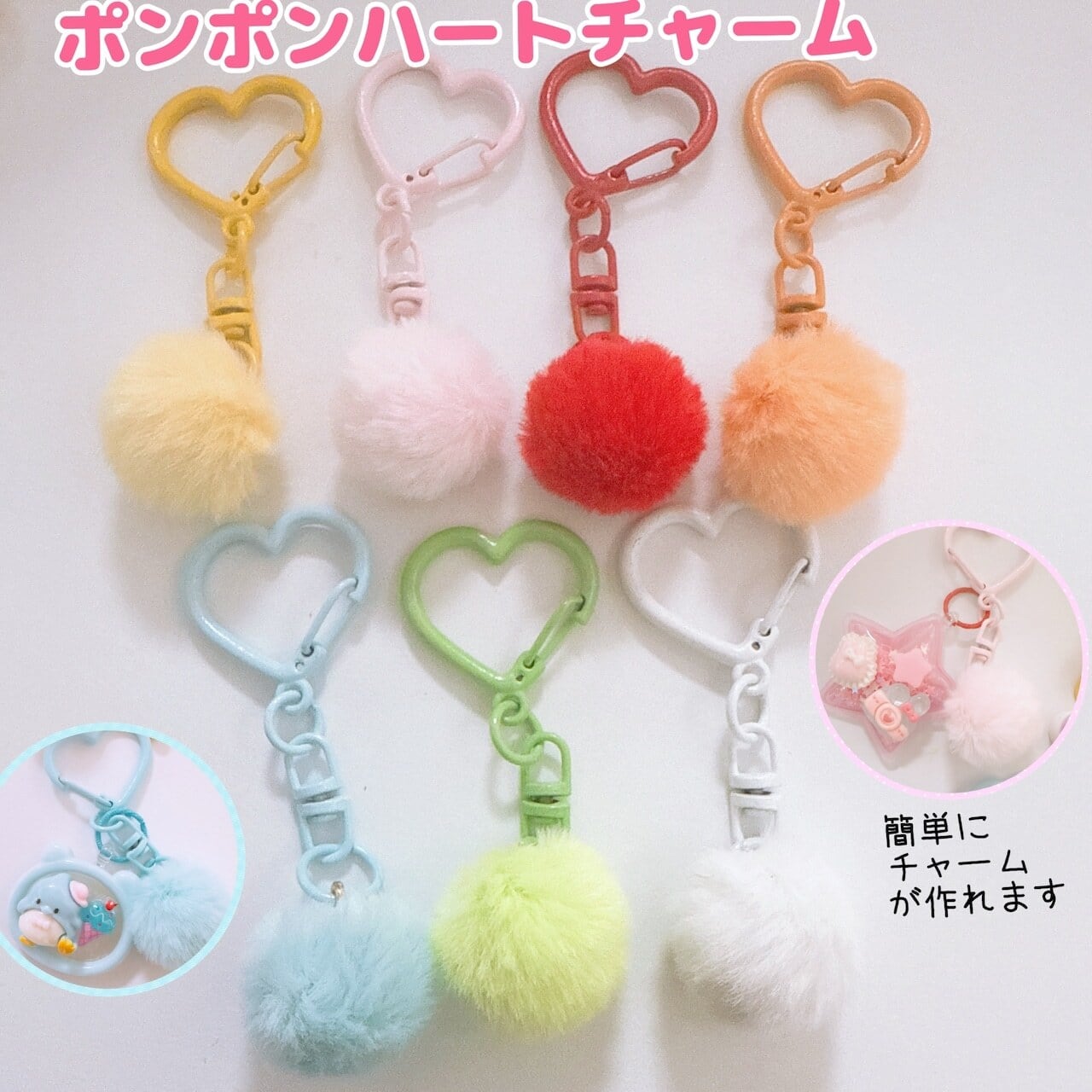 カスタムペンやカスタムチャームバーにするならポンポンハートチャームやキャンディフラワーズチャームなど