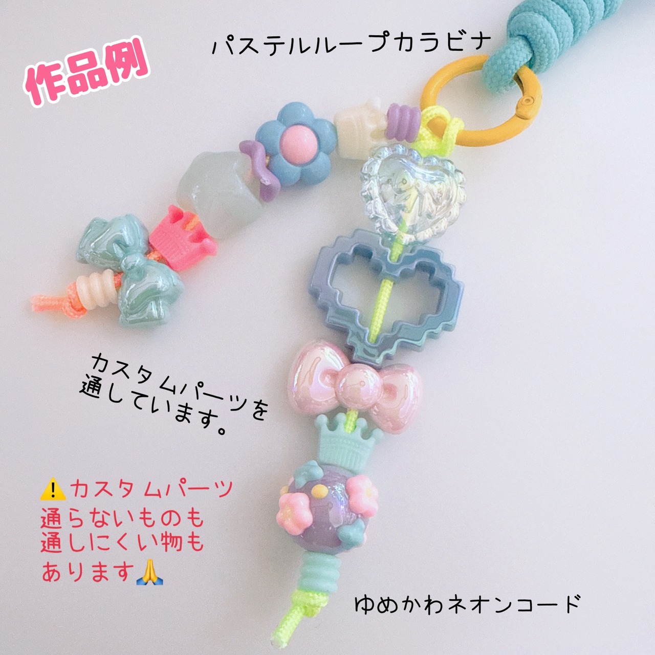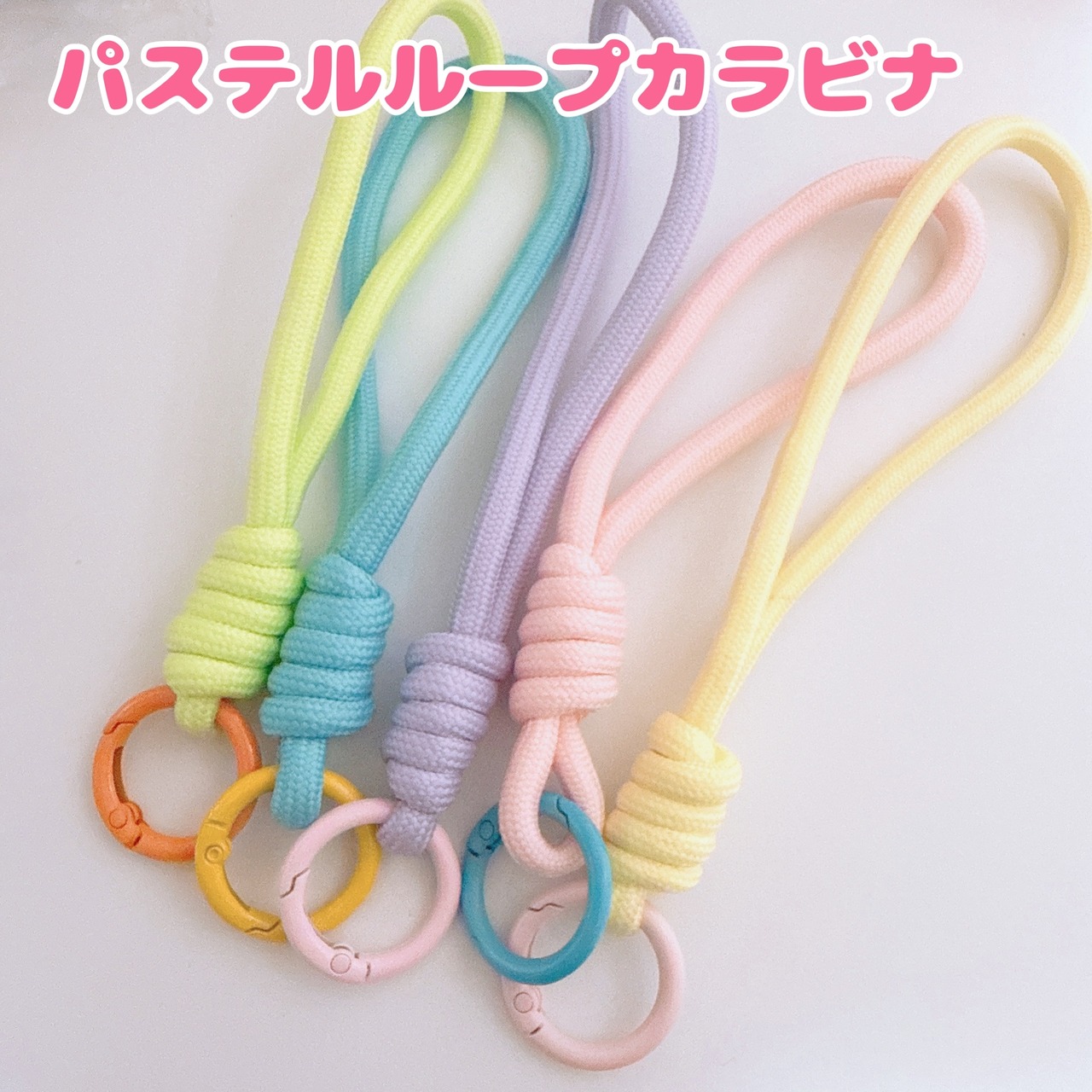P29)1個 パステルループカラビナ ゆめかわコード 紐 チャーム カラフルコード ワークショップにも