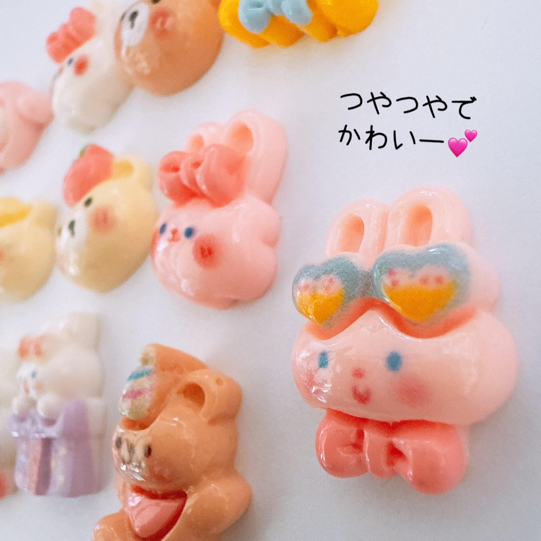 D101)10個 ミニサイズ アニマルフレンズ 動物さん くま うさぎ ひつじ ネコ 小さなパーツ ランダム レジン カボション