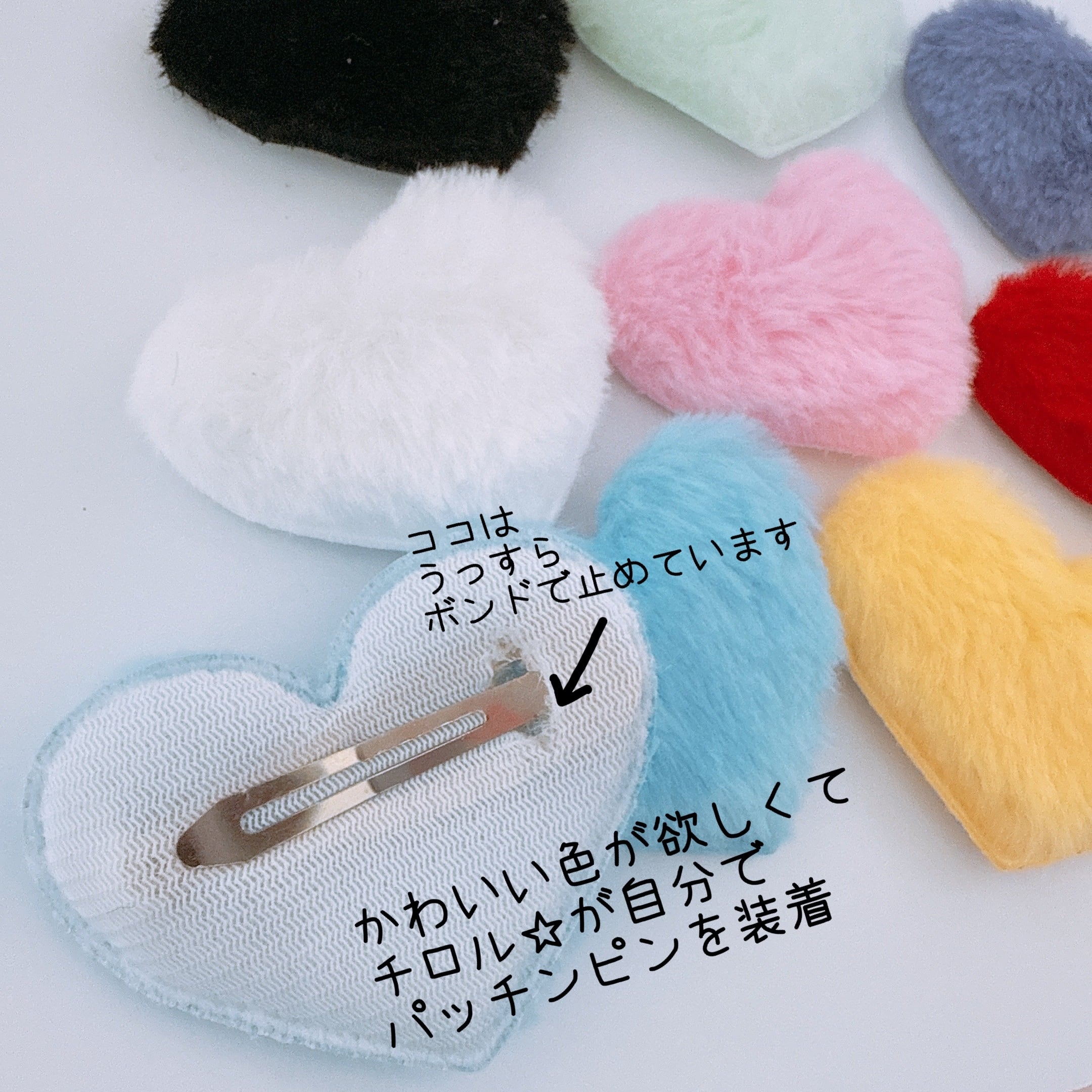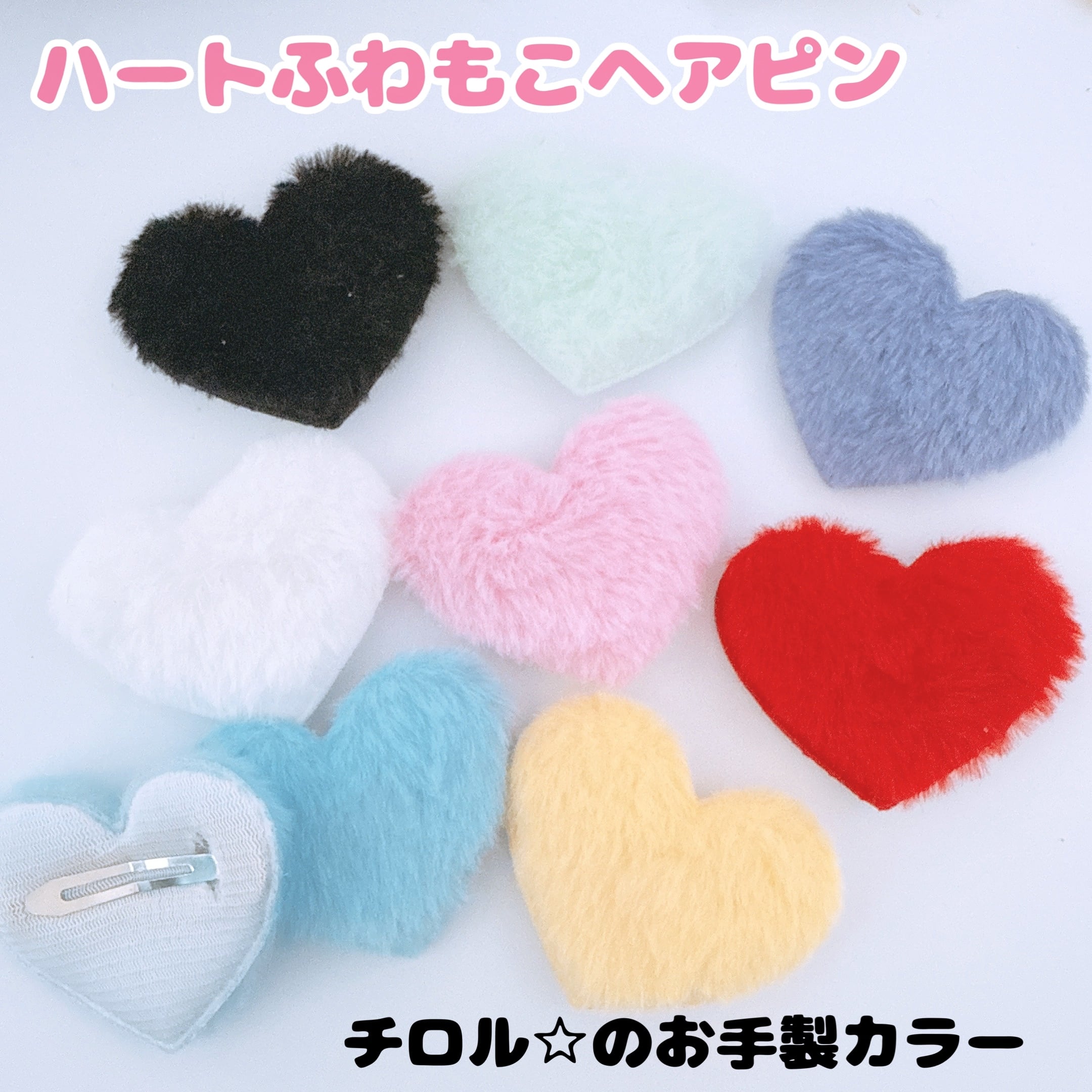 B65)1個 ハートふわもこヘアピン chirol☆お手製 ふわもこ ハート ヘアクリップ やっとこピン ヘアクリップ パーツを貼るだけで完成