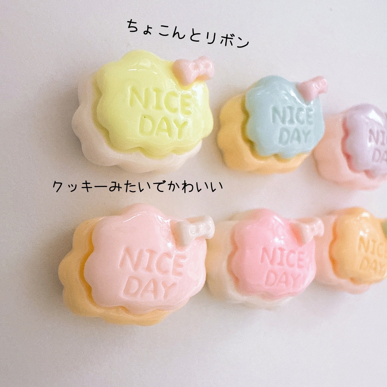 D106)4個ランダム ミニサイズ もこもこnicedayプレート スイーツ りぼん パステル♡ ピンク パープル 黄色 ブルー チョコ パーツ デコパーツ レジン カボション