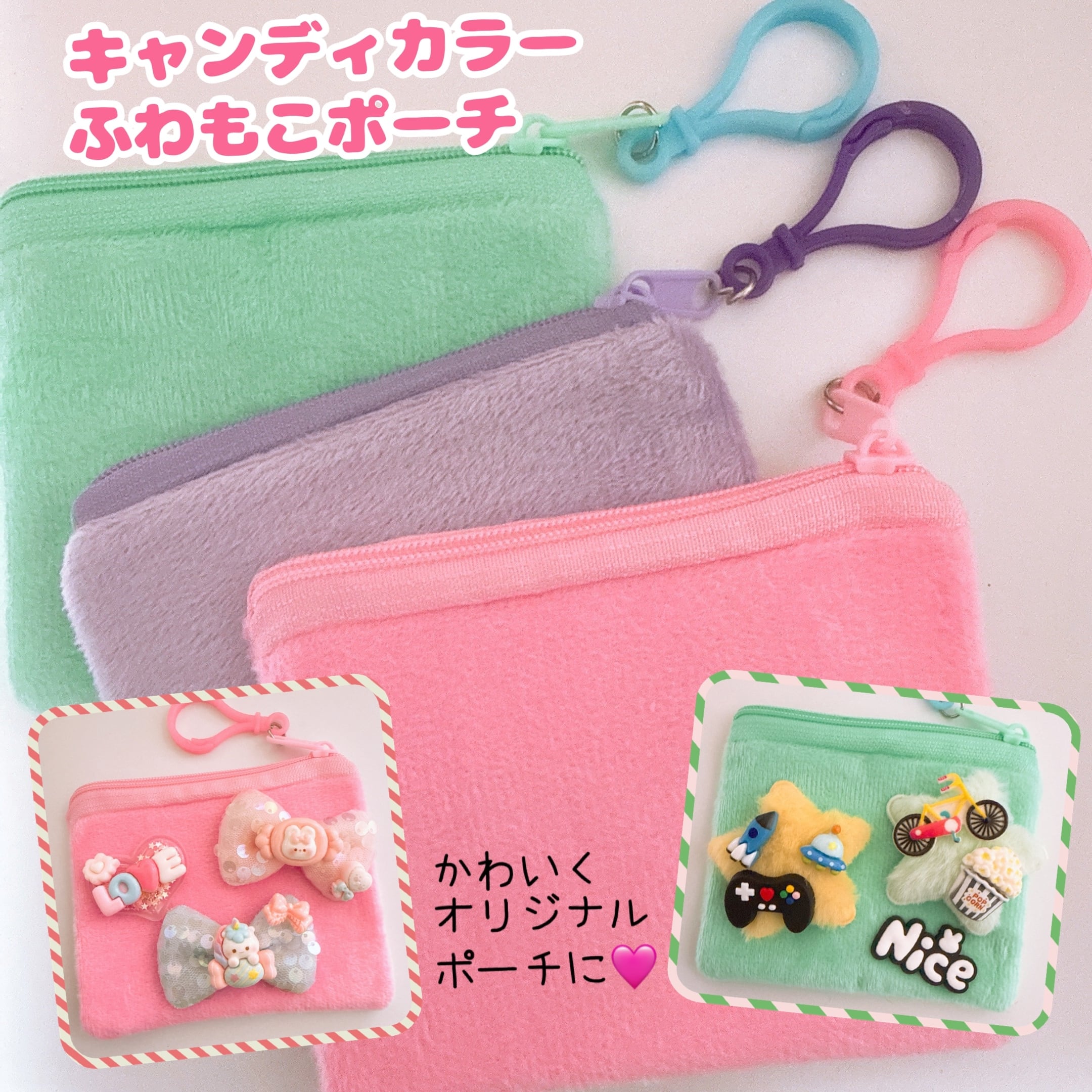 A15)キャンディカラーポーチ デコポーチ ふわふわポーチ ミント パープル ピンク