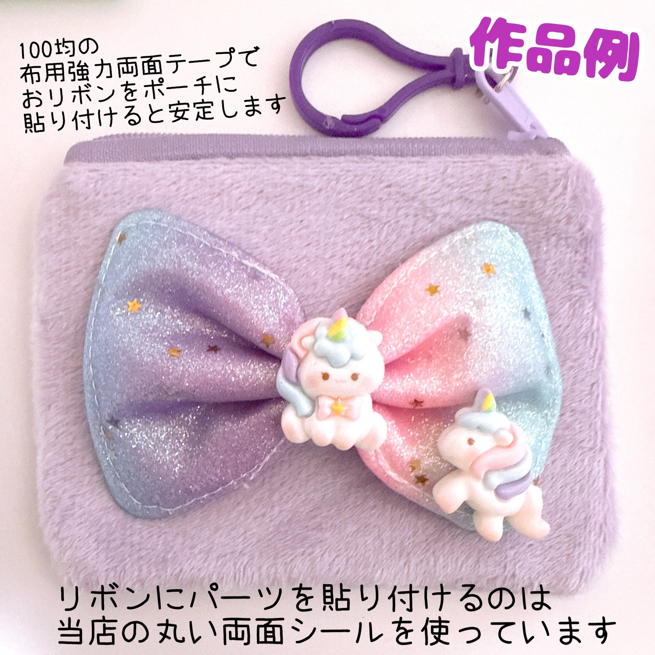 ◎ポーチにりぼんを貼るのには100均の【布用強力両面テープ】がおすすめ!