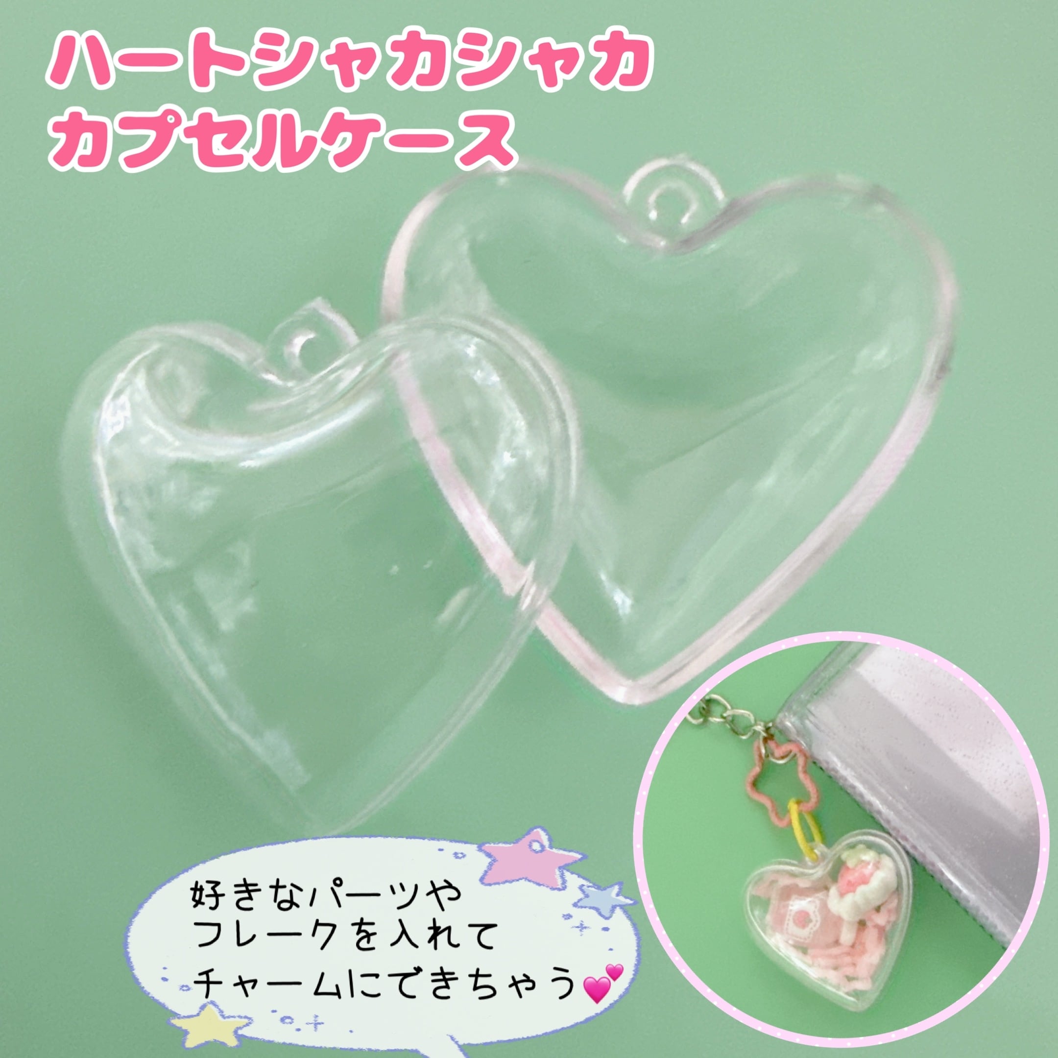 B74)2個 ハートシャカシャカ チャームパプセル 透明 デコパーツ ハートカプセル ハートチャーム