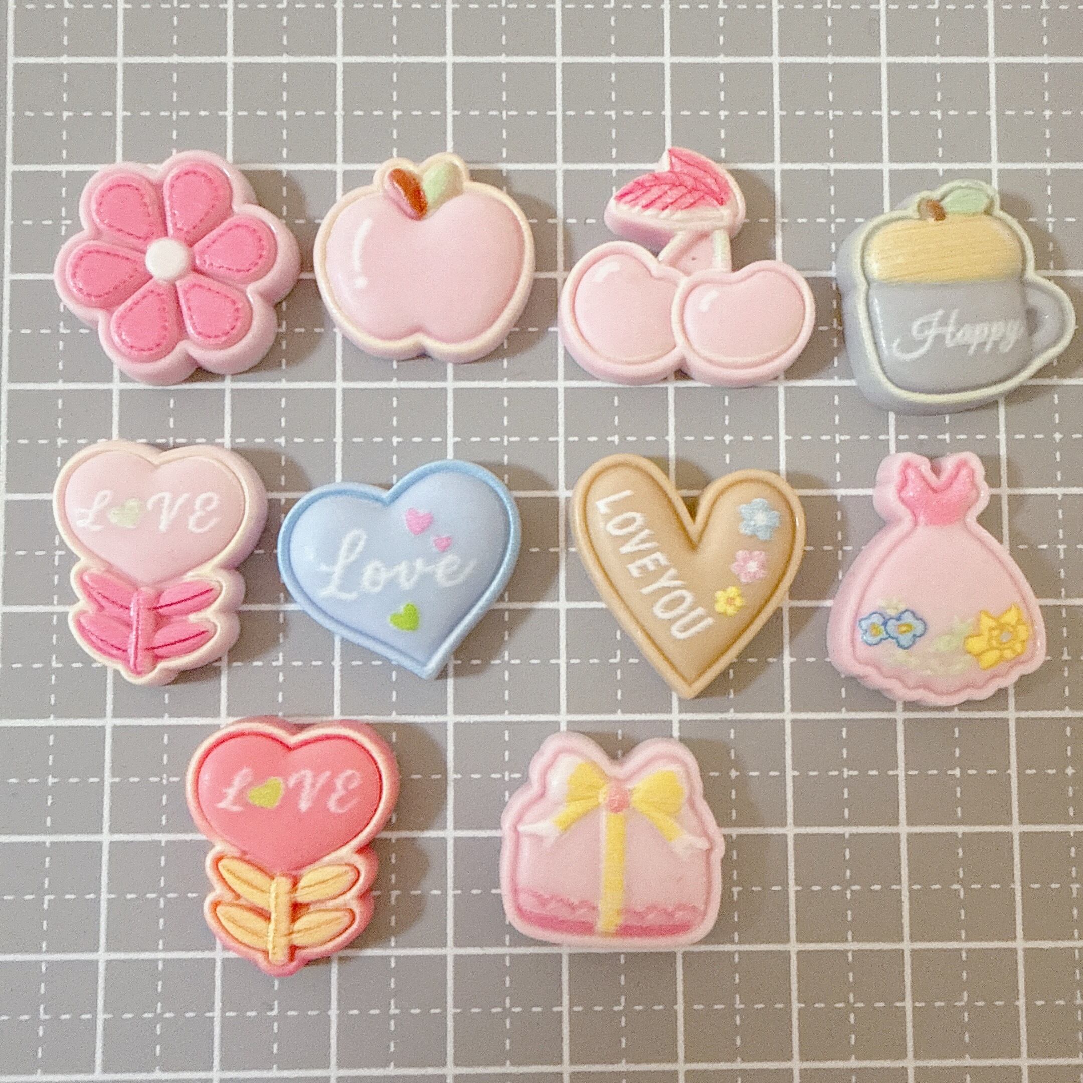 淡い色合いでおしゃれなモチーフが多く、ハート・お花・ドレス・ギフトなど