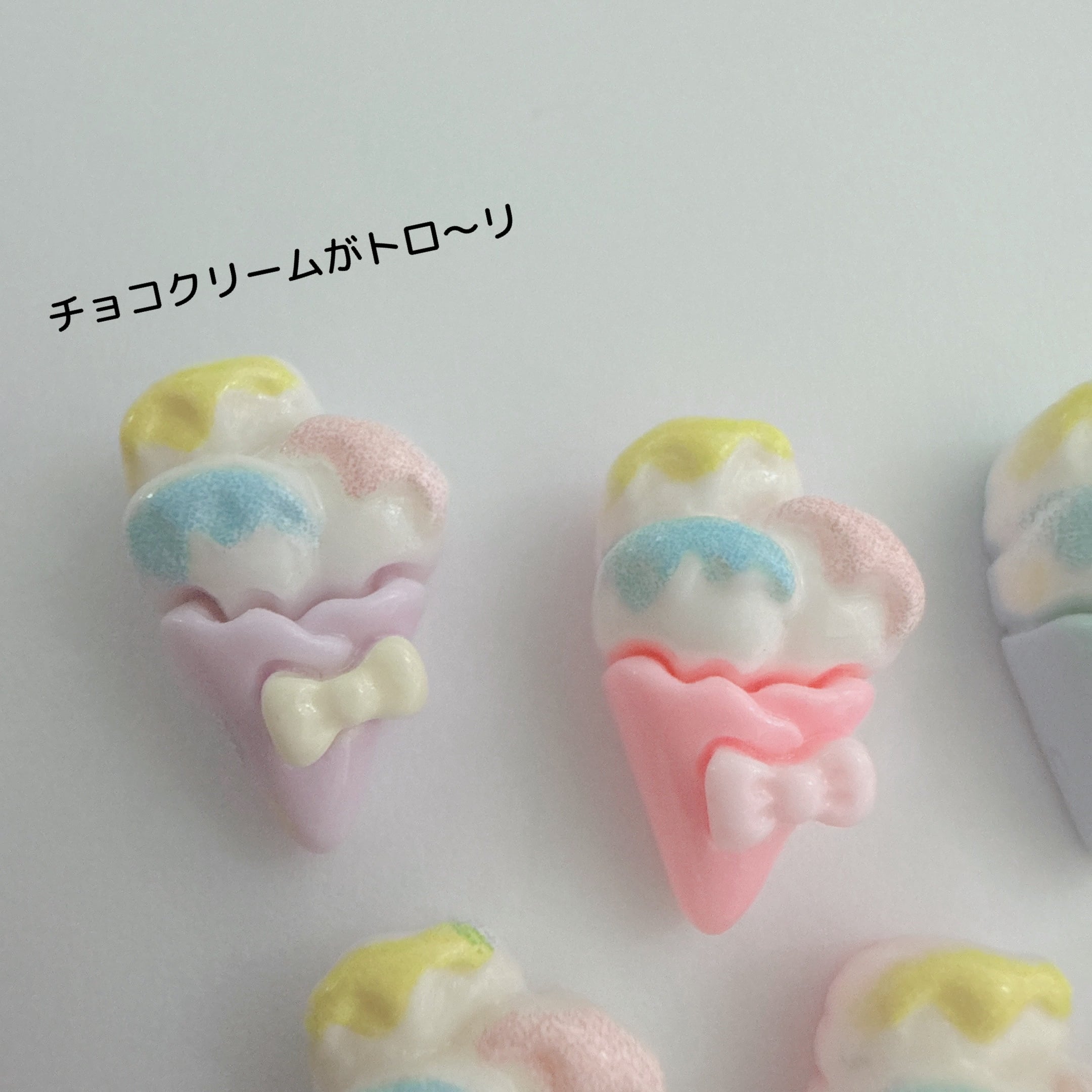 D118)4個ランダム もりもりアイスクレープ ミニサイズ ゆめいろクレープ りぼん パステル♡ ピンク パープル 黄色 ブルー ミント パーツ デコパーツ レジン