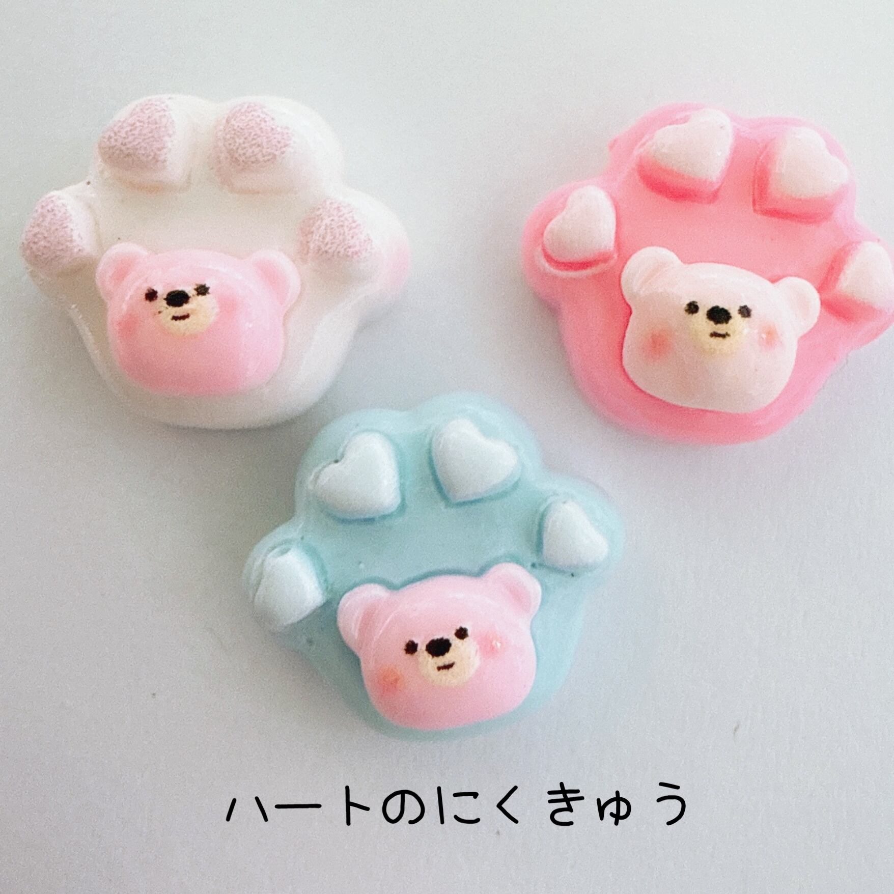 D120)4個ランダム ミニサイズ くまちゃんにくきゅう ハートの肉球 ミニサイズ パステル♡ ピンク パープル 黄色 ブルー ミント パーツ デコパーツ レジン