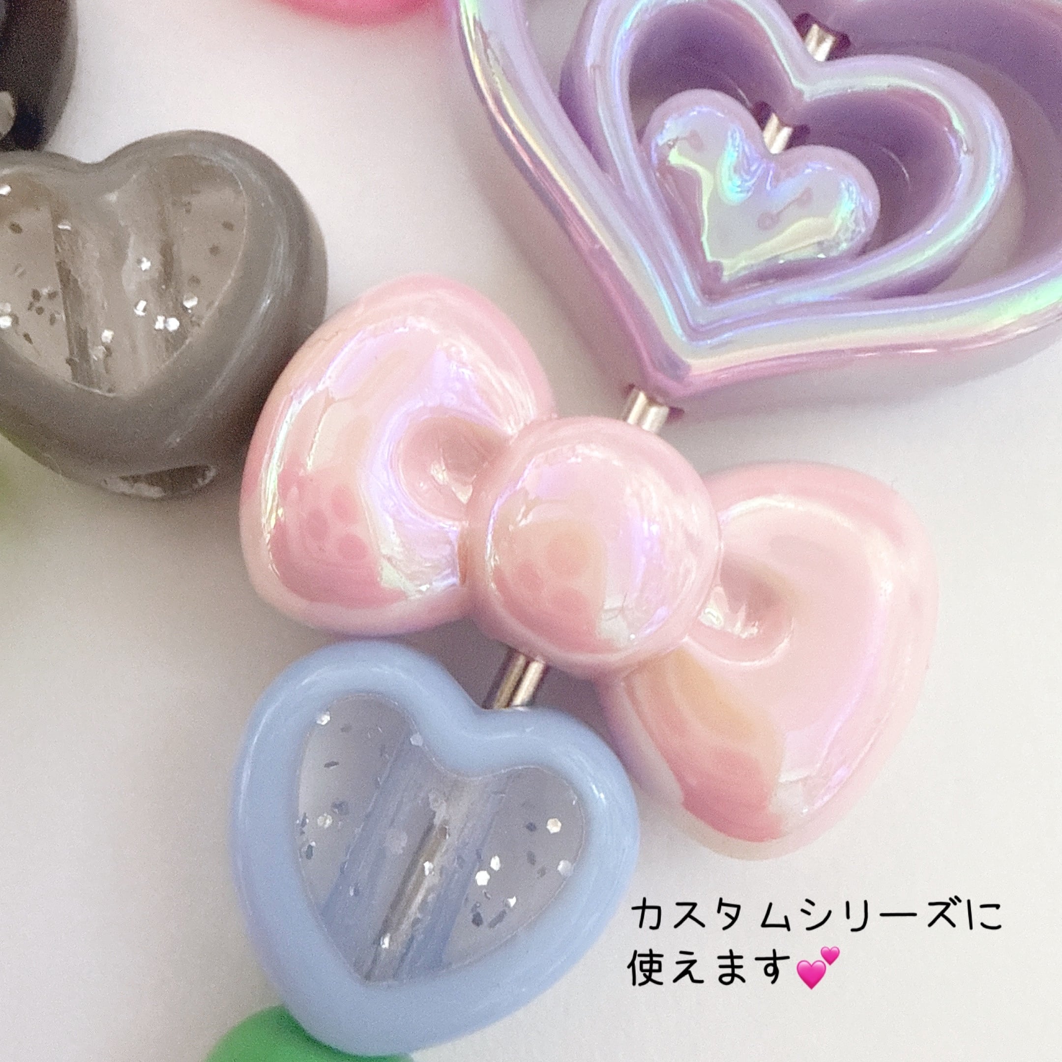K50)ランダム5個 カスタム用 クリアラメカスタムハート ハート カスタムペン デコパーツ ビーズ