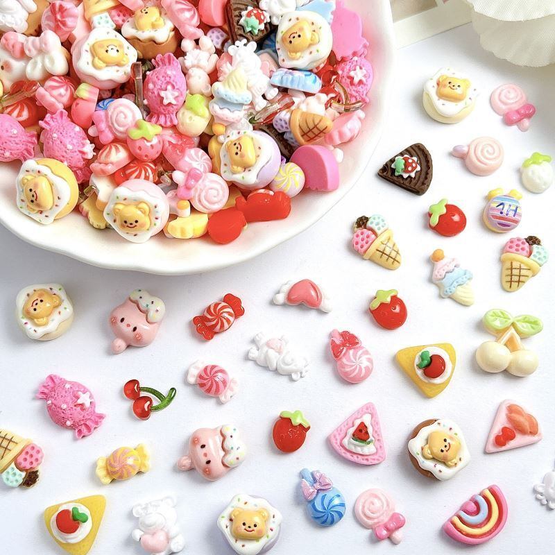 D124)10個ランダム キャンディパーティーmix ミニサイズ スイーツ 動物さん ケーキ クッキー パステル♡ パーツ デコパーツ