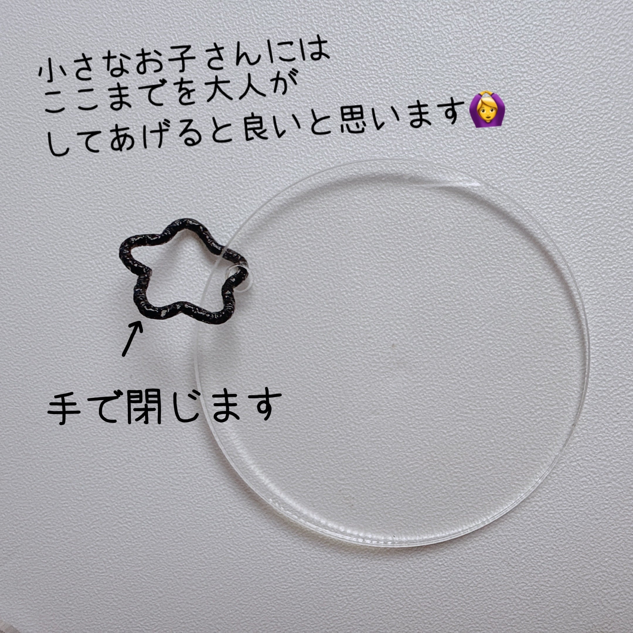 プレートに星のリングを付けて、更に別売りのまん丸キーホルダーに通せば