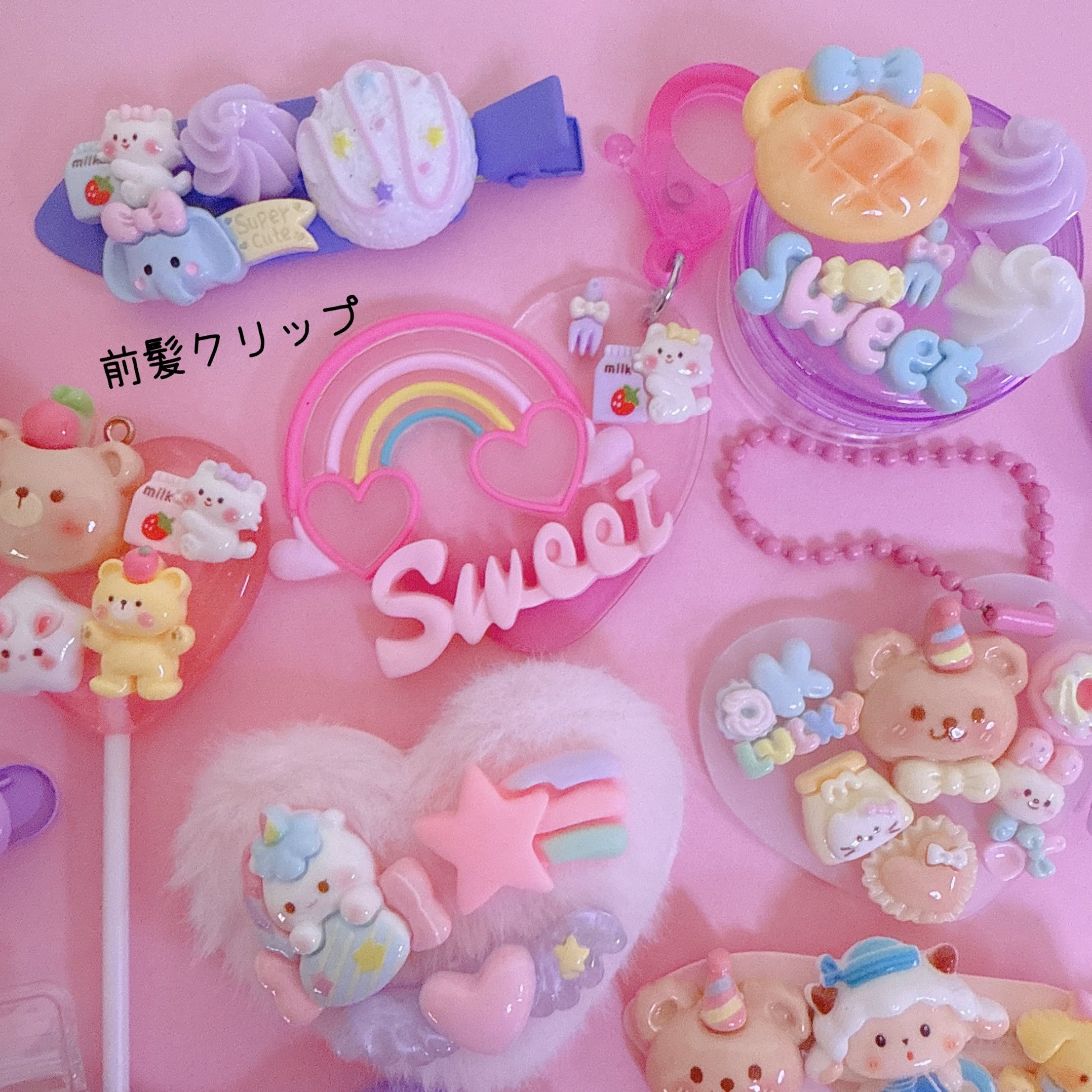 D126)4個 ミニサイズ MILKねこちゃん いちごみるく パーツ カラフル パステル かわいい
