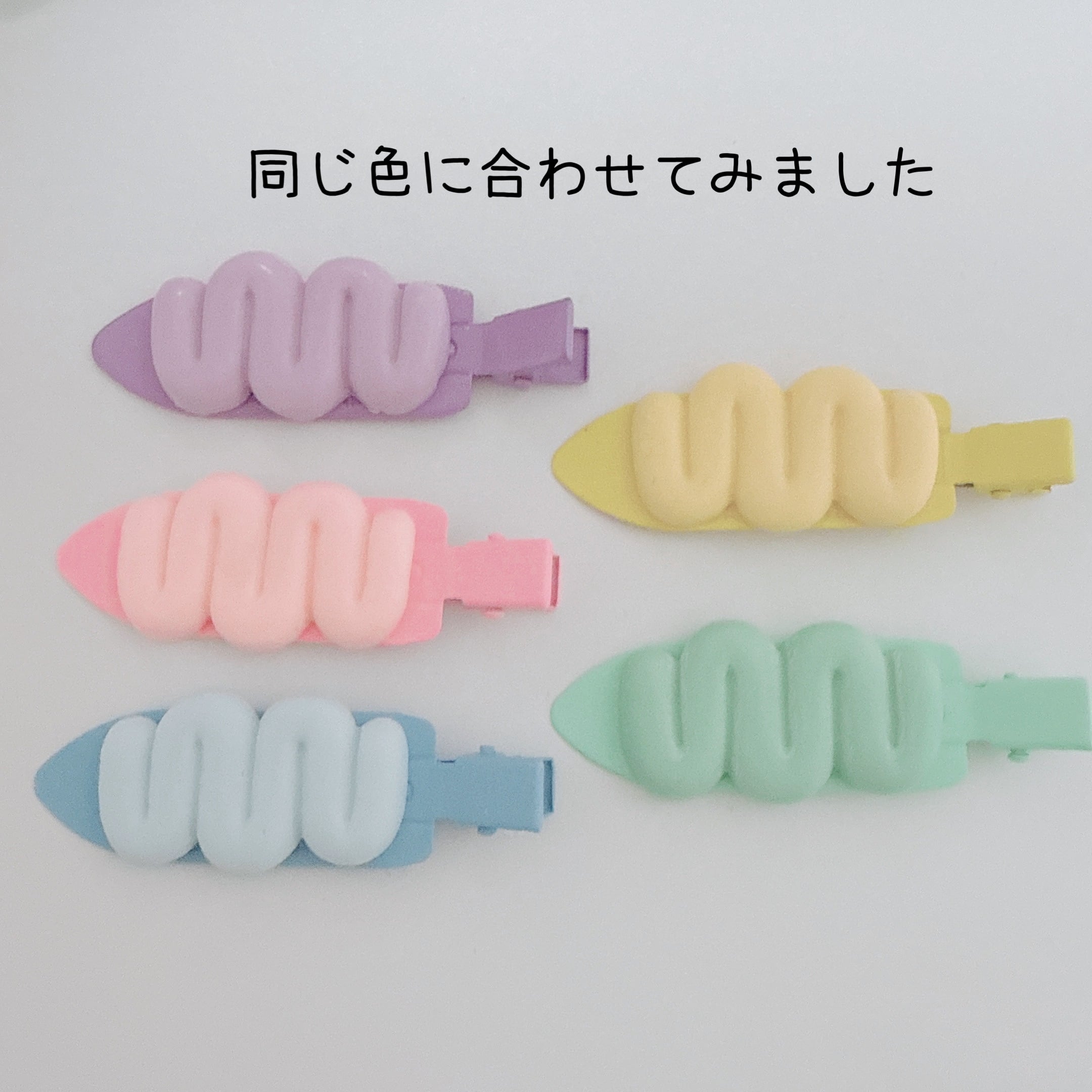 それを前髪クリップに貼ったり、シャカシャカに入れたり