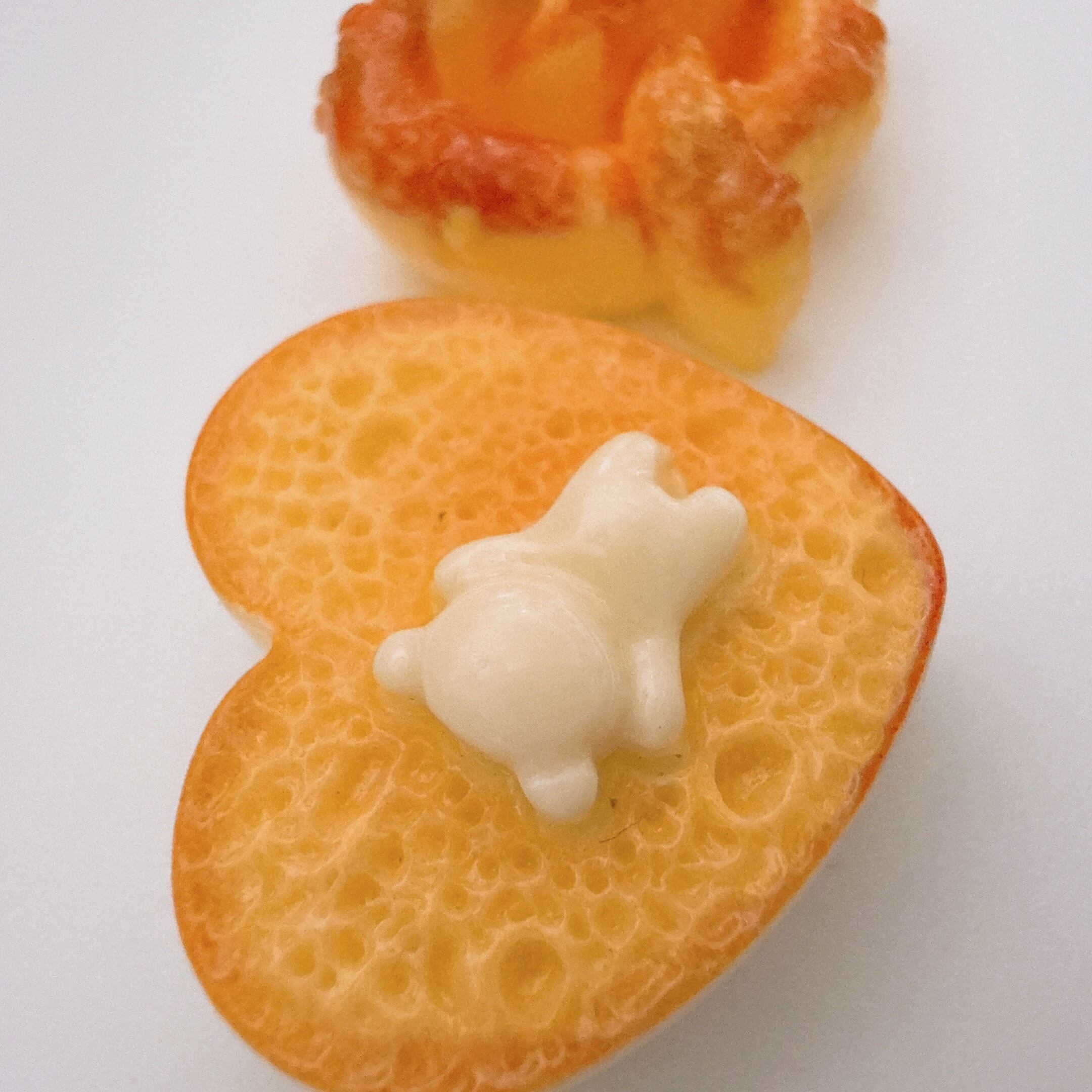 お顔が付いていたリ、カタチがお顔になっているかわいい食べ物パーツです。