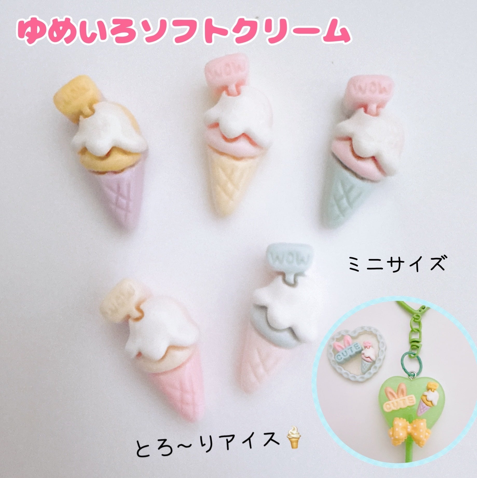 D130)ランダム4個 ミニサイズ ゆめいろソフトクリーム ゆめかわ とろーり 生クリーム スプーン パーツ デコパーツ 模造食品