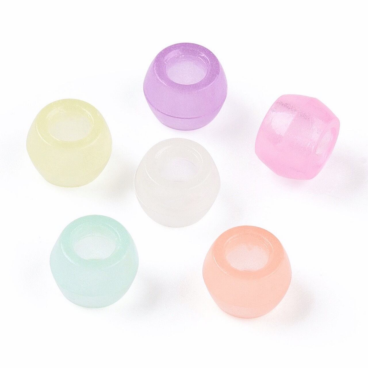 K52)5g約28個 ランダム カスタム用 大穴ビーズ 蓄光 パステル ミックスカラー カスタムペン デコパーツ カラフル