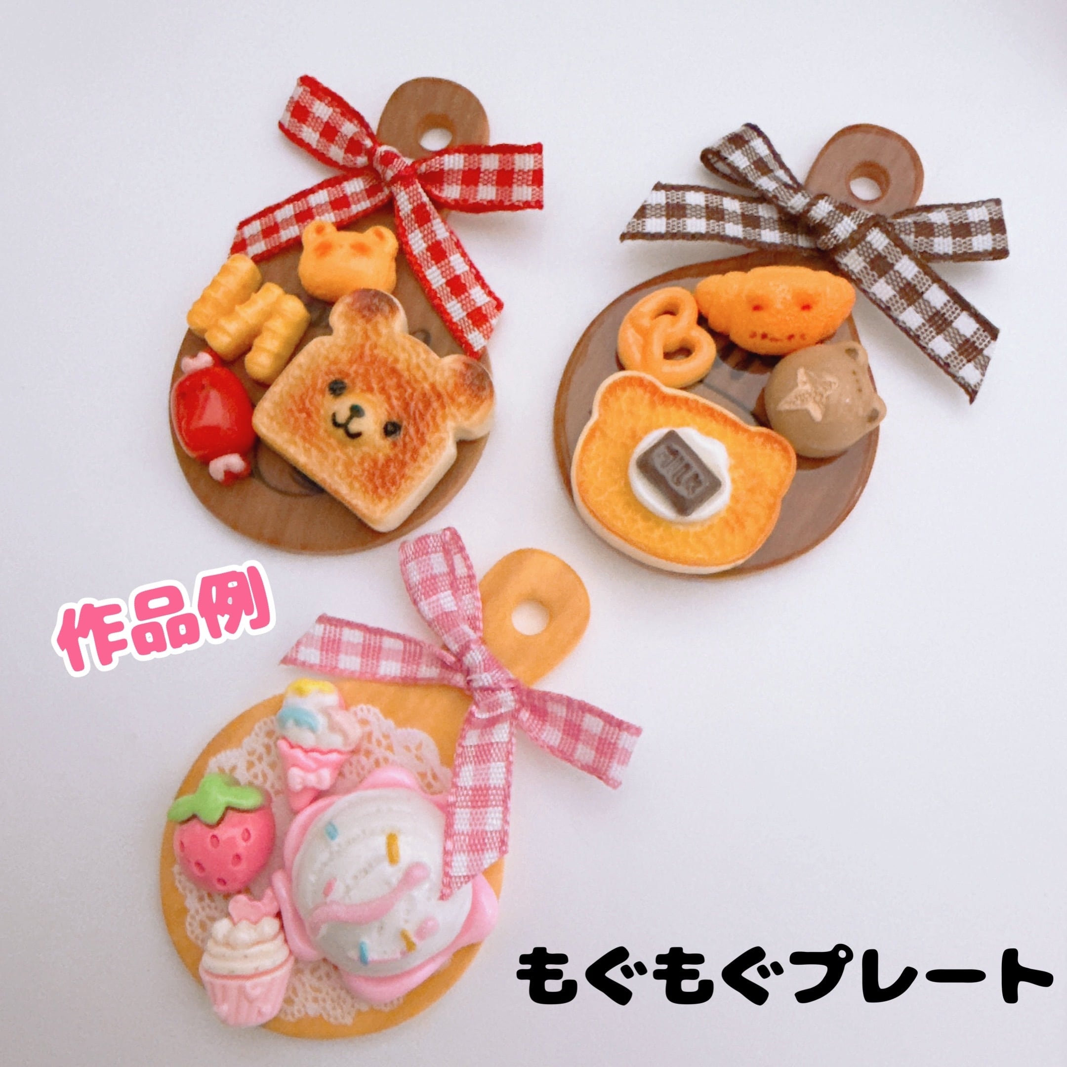 R19)1個 もぐもぐプレート パンボード カッティングボード おかずやパンやデザートを 選んで貼り付けて ぶら下げて たのしい おままごと チャーム